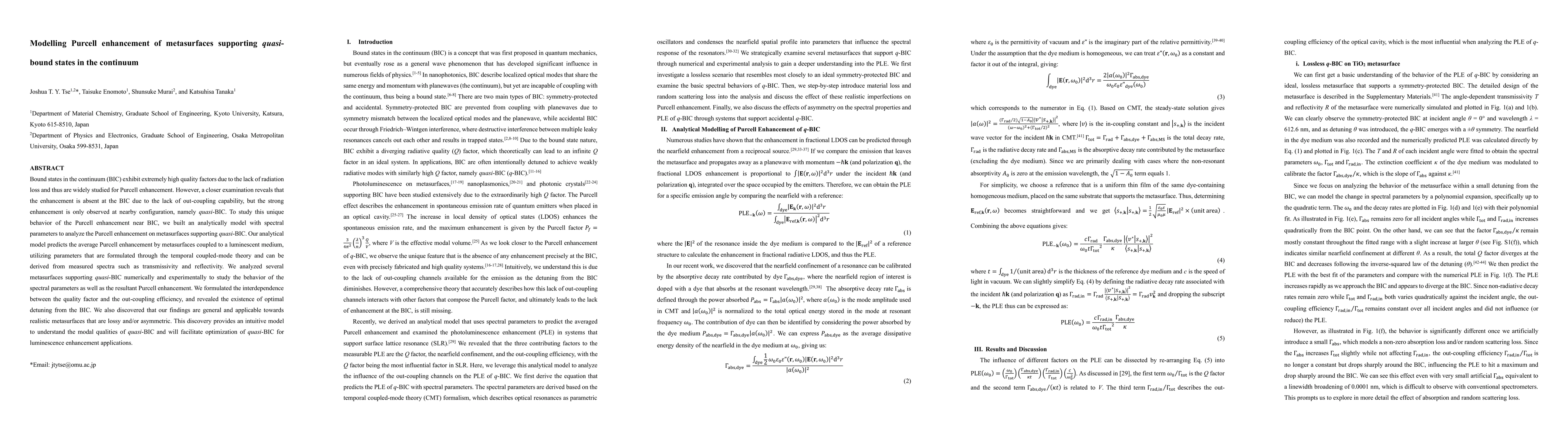 Bound states in the continuum (BIC) exhibit extremely high quality factors due to the lack of radiation loss and thus are widely studied for Purcell enhancement. However, a closer examination reveals that the enhancement is absent at the BIC due to the lack of out-coupling capability, but the strong enhancement is only observed at nearby configuration, namely quasi-BIC. To study this unique behavior of the Purcell enhancement near BIC, we built an analytically model with spectral parameters to analyze the Purcell enhancement on metasurfaces supporting quasi-BIC. Our analytical model predicts the average Purcell enhancement by metasurfaces coupled to a luminescent medium, utilizing parameters that are formulated through the temporal coupled-mode theory and can be derived from measured spectra such as transmissivity and reflectivity. We analyzed several metasurfaces supporting quasi-BIC numerically and experimentally to study the behavior of the spectral parameters as well as the resultant Purcell enhancement. We formulated the interdependence between the quality factor and the out-coupling efficiency, and revealed the existence of optimal detuning from the BIC. We also discovered that our findings are general and applicable towards realistic metasurfaces that are lossy and/or asymmetric. This discovery provides an intuitive model to understand the modal qualities of quasi-BIC and will facilitate optimization of quasi-BIC for luminescence enhancement applications.
