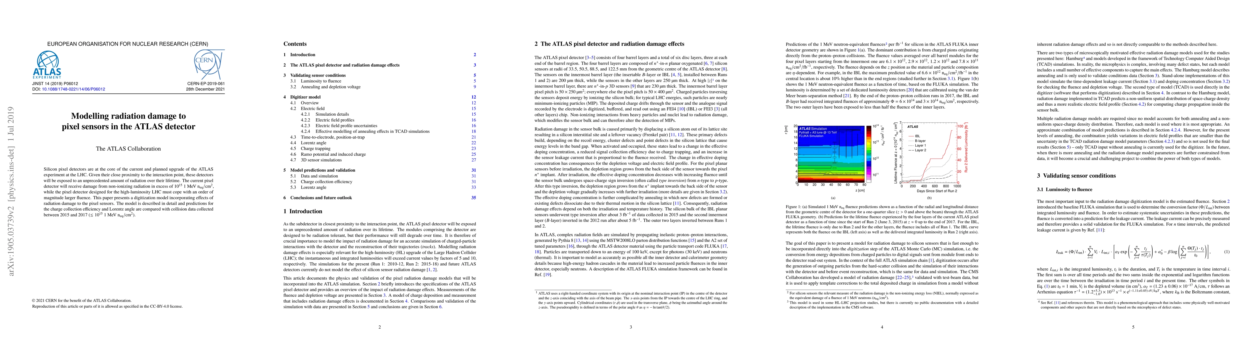 This paper develops a digitization model to simulate radiation damage to silicon pixel sensors in the ATLAS detector, crucial for the LHC upgrade. It predicts the effects on charge collection efficiency and Lorentz angle, validated against collision data from 2015-2017.