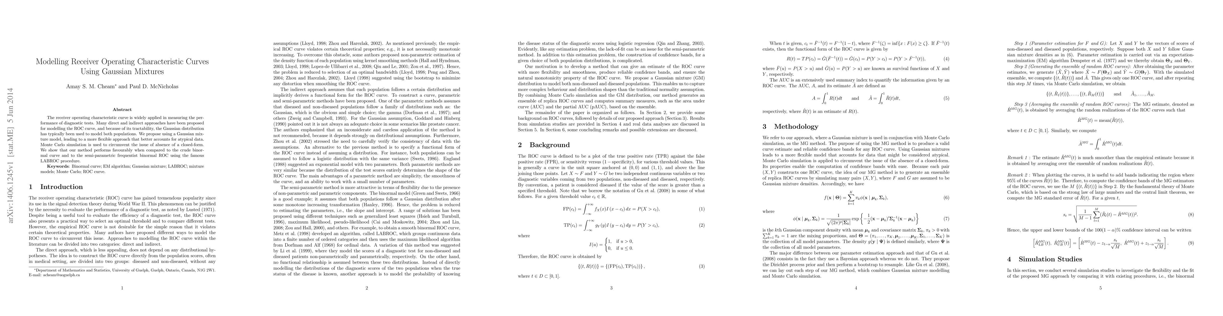 This paper proposes a Gaussian mixture model to enhance the flexibility of modelling receiver operating characteristic (ROC) curves, which are used to assess diagnostic test performance. The method is shown to outperform traditional binormal models through Monte Carlo simulations and comparisons with the LABROC procedure.