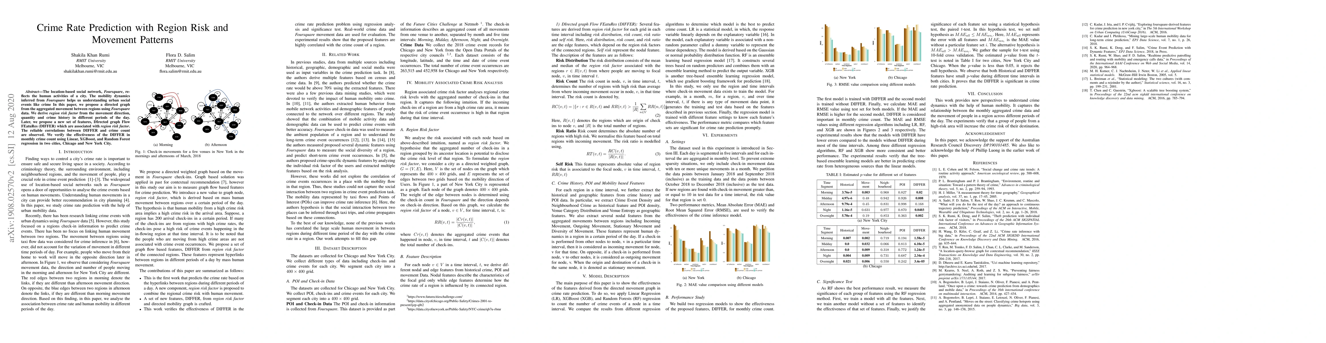 The location-based social network, Foursquare, reflects the human activities of a city. The mobility dynamics inferred from Foursquare helps us understanding urban social events like crime In this paper, we propose a directed graph from the aggregated movement between regions using Foursquare data. We derive region risk factor from the movement direction, quantity and crime history in different periods of the day. Later, we propose a new set of features, DIrected graph Flow FEatuRes (DIFFER) which are associated with region risk factor. The reliable correlations between DIFFER and crime count are observed. We verify the effectiveness of the DIFFER in monthly crime count using Linear, XGBoost, and Random Forest regression in two cities, Chicago and New York City.