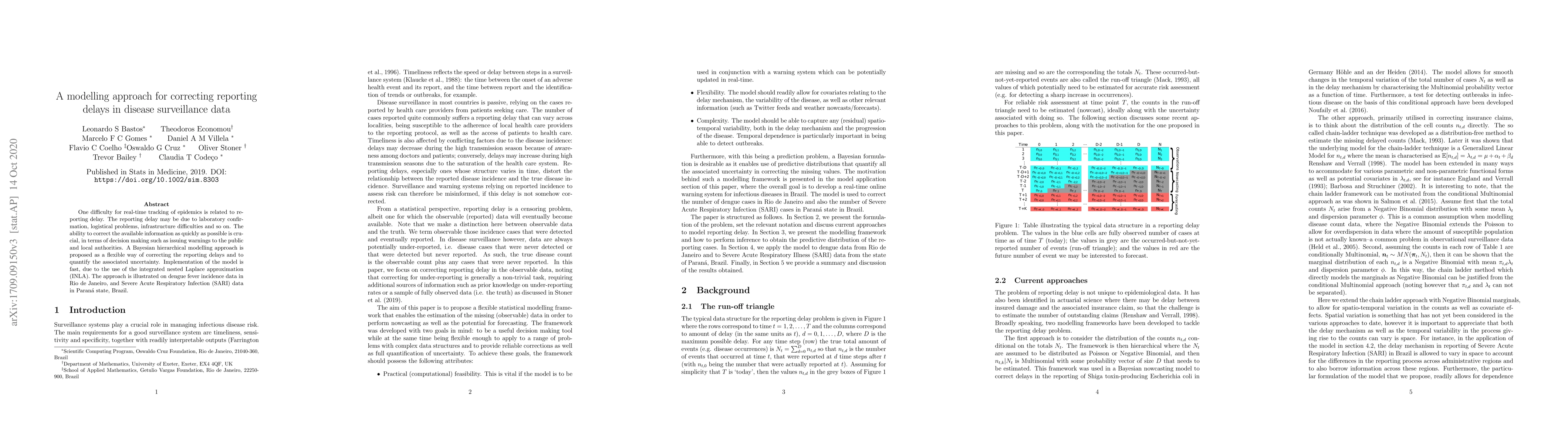 A Bayesian hierarchical model is proposed to correct reporting delays in disease surveillance data, allowing for fast implementation using the integrated nested Laplace approximation method.