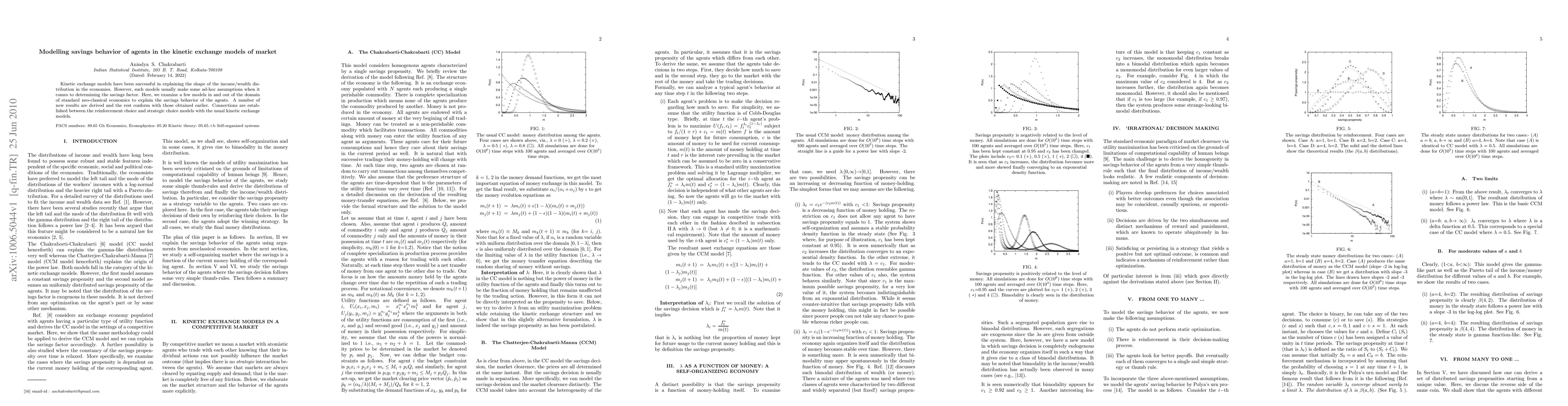 Kinetic exchange models have been successful in explaining the shape of the income/wealth distribution in the economies. However, such models usually make some ad-hoc assumptions when it comes to determining the savings factor. Here, we examine a few models in and out of the domain of standard neo-classical economics to explain the savings behavior of the agents. A number of new results are derived and the rest conform with those obtained earlier. Connections are established between the reinforcement choice and strategic choice models with the usual kinetic exchange models.