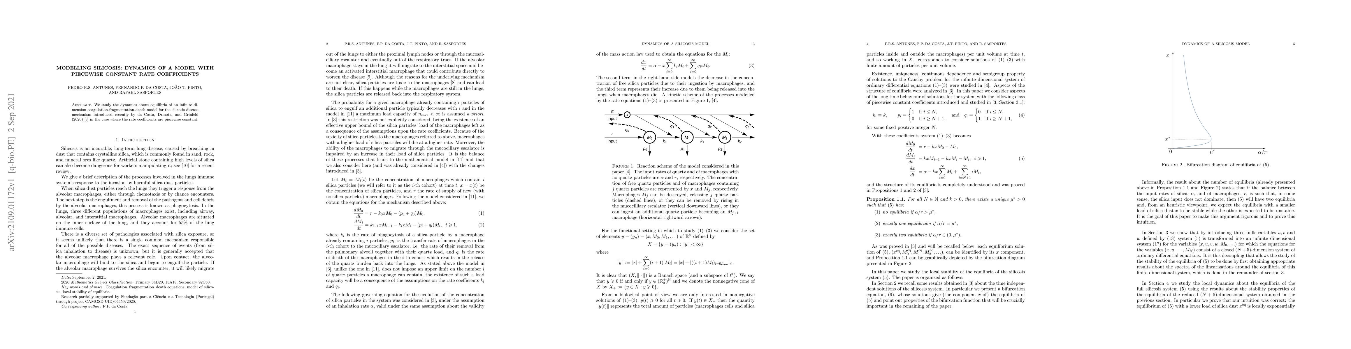 We study the dynamics about equilibria of an infinite dimension coagulation-fragmentation-death model for the silicosis disease mechanism introduced recently by da Costa, Drmota, and Grinfeld [Modelling silicosis: structure of equilibria, Euro. J. Appl. Math., 31 (6), (2020) 950-967] in the case where the rate coefficients are piecewise constant.