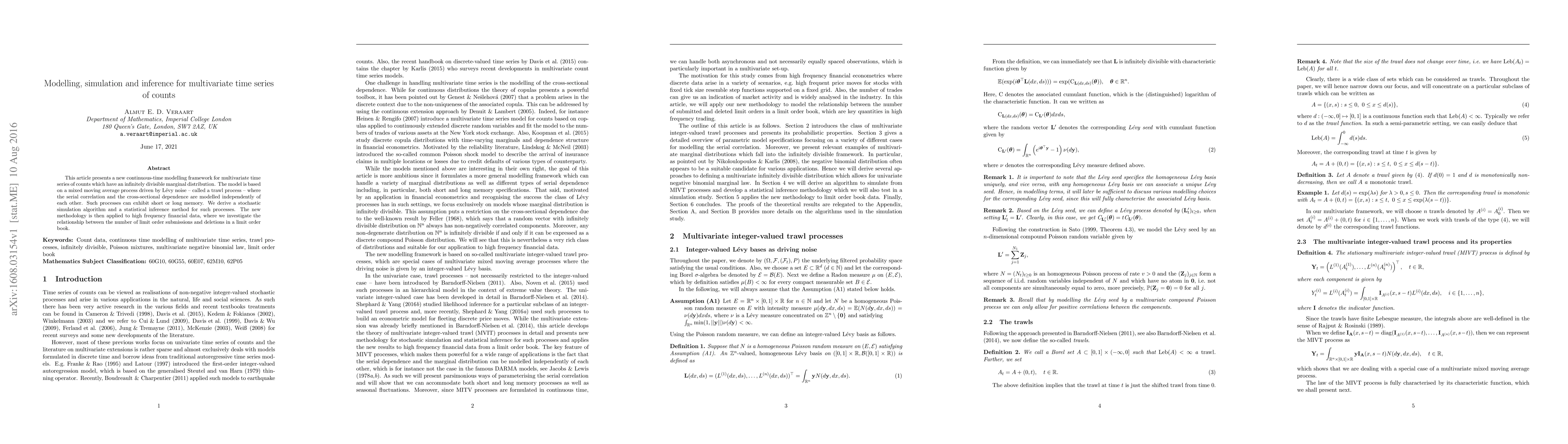 This paper introduces a new continuous-time model for multivariate time series of counts using a trawl process driven by Lévy noise, allowing independent modeling of serial correlation and cross-sectional dependence. The study also develops a simulation algorithm and inference method, which are applied to high-frequency financial data to analyze limit order book dynamics.