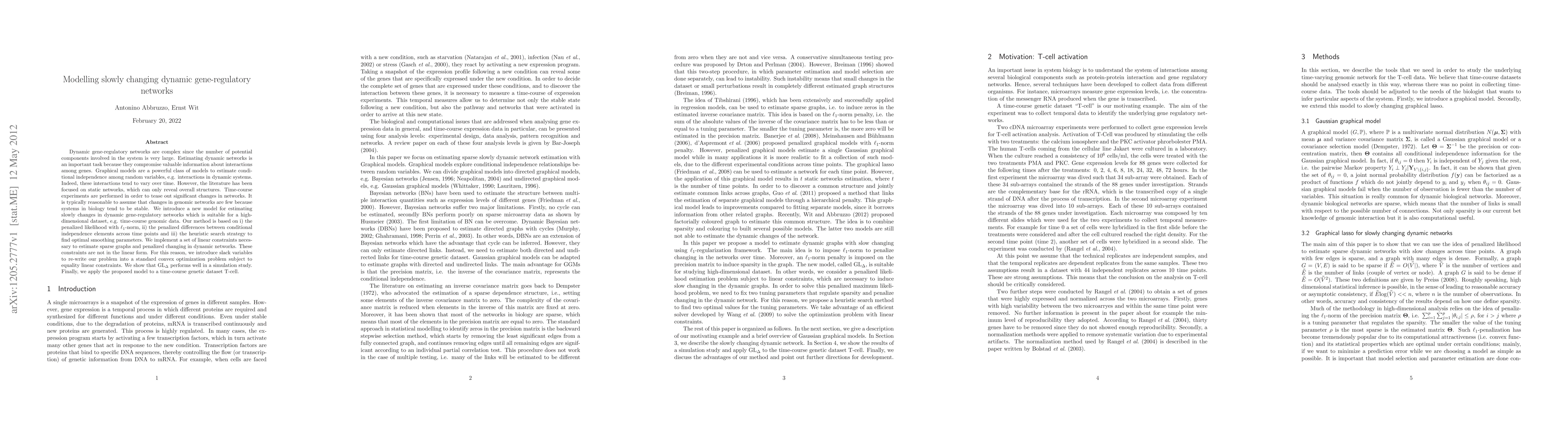 This paper introduces a new model for estimating slowly changing dynamic gene-regulatory networks from high-dimensional time-course genomic data, using a combination of penalized likelihood and heuristic search strategy.