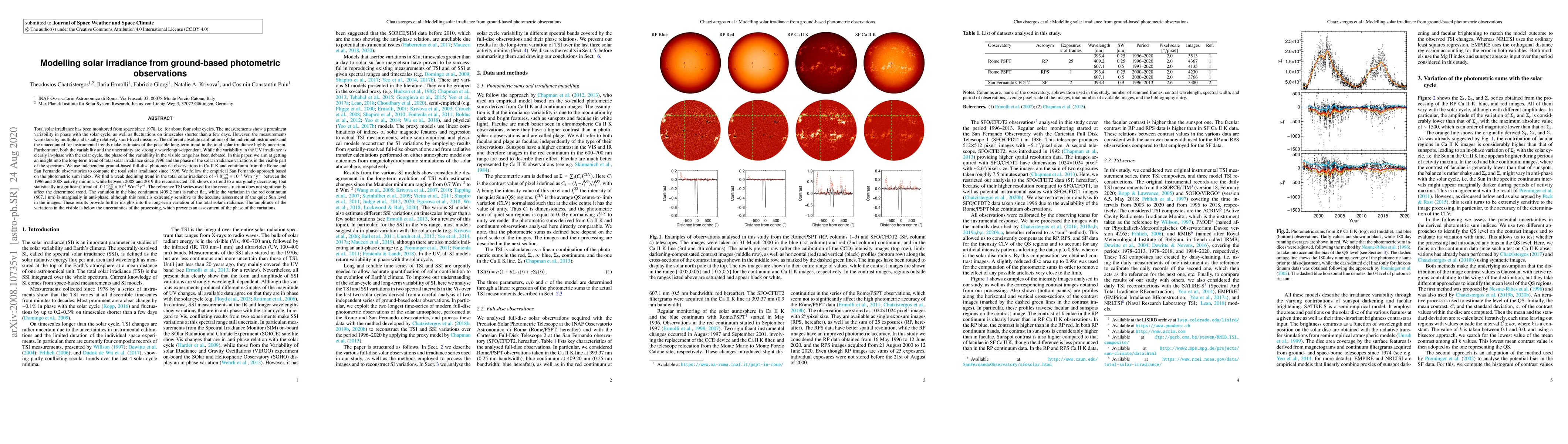 This paper uses ground-based photometric observations to model solar irradiance trends since 1996, finding a weak declining trend in total solar irradiance between 1996-2008 but no significant trend after 2008.