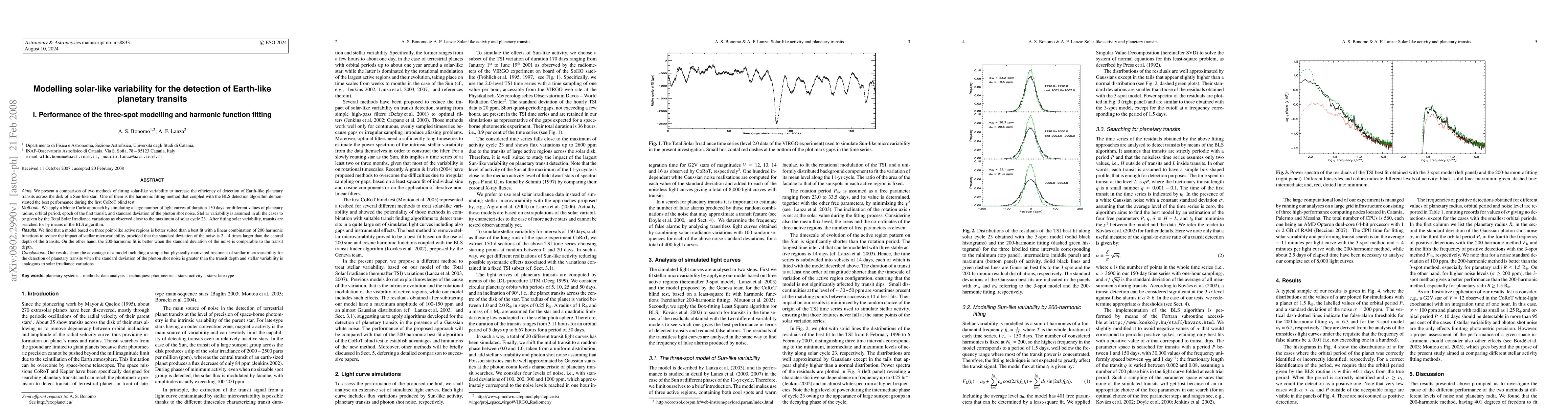 This paper compares two methods for fitting solar-like variability to enhance the detection of Earth-like planetary transits: a three-spot model and a 200-harmonic fit. The three-spot model proves more effective when noise is significantly larger than transit depth, while the harmonic fit is superior when noise is comparable to transit depth.