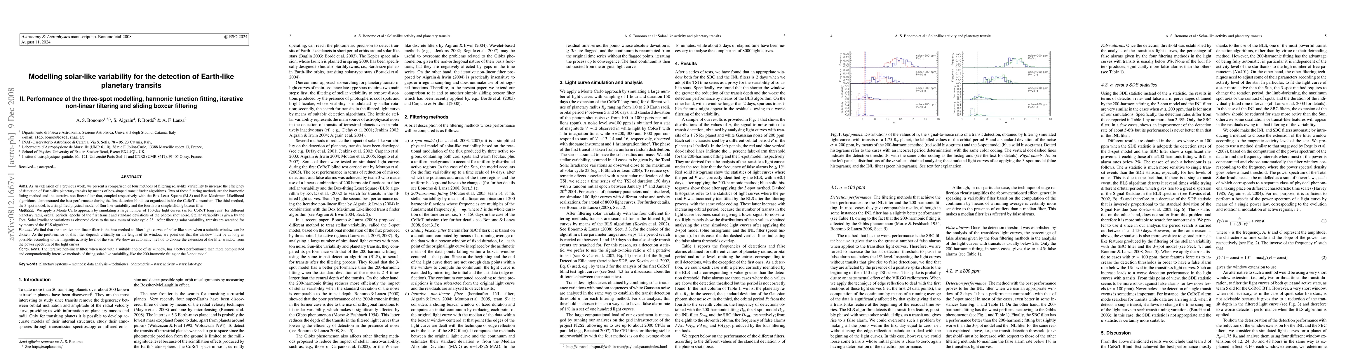 This paper compares four methods for filtering solar-like variability to enhance the detection of Earth-like planetary transits, finding that the iterative non-linear filter is the most effective when a suitable window length is chosen, outperforming both harmonic fitting and the 3-spot model.