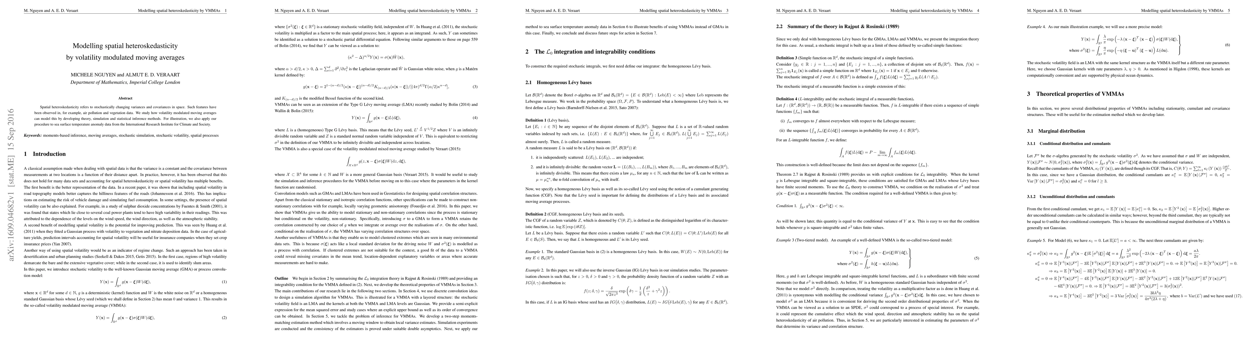 Spatial heteroskedasticity refers to stochastically changing variances and covariances in space. Such features have been observed in, for example, air pollution and vegetation data. We study how volatility modulated moving averages can model this by developing theory, simulation and statistical inference methods. For illustration, we also apply our procedure to sea surface temperature anomaly data from the International Research Institute for Climate and Society.