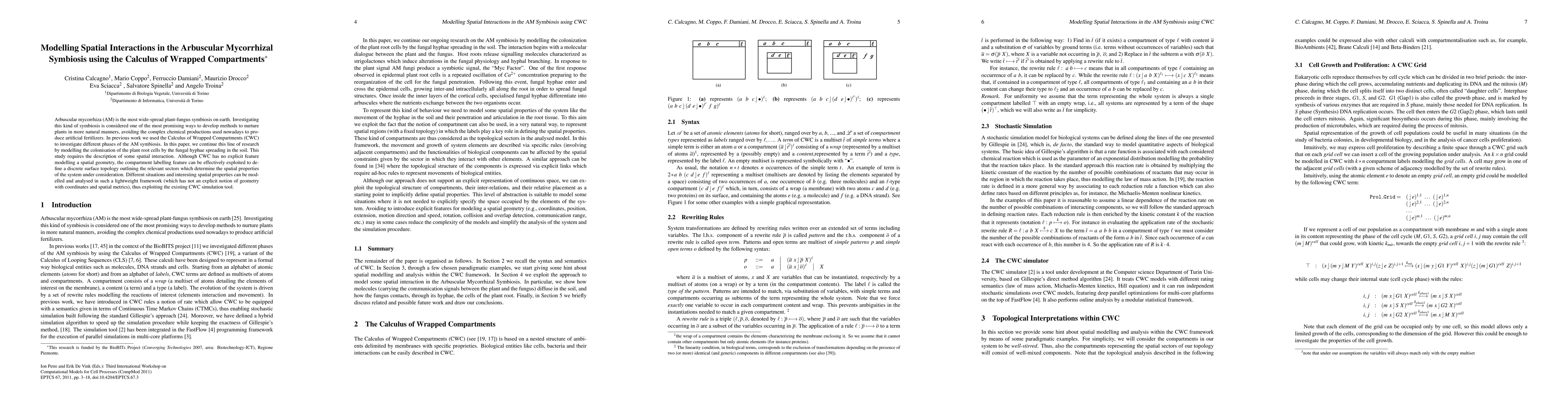 Arbuscular mycorrhiza (AM) is the most wide-spread plant-fungus symbiosis on earth. Investigating this kind of symbiosis is considered one of the most promising ways to develop methods to nurture plants in more natural manners, avoiding the complex chemical productions used nowadays to produce artificial fertilizers. In previous work we used the Calculus of Wrapped Compartments (CWC) to investigate different phases of the AM symbiosis. In this paper, we continue this line of research by modelling the colonisation of the plant root cells by the fungal hyphae spreading in the soil. This study requires the description of some spatial interaction. Although CWC has no explicit feature modelling a spatial geometry, the compartment labelling feature can be effectively exploited to define a discrete surface topology outlining the relevant sectors which determine the spatial properties of the system under consideration. Different situations and interesting spatial properties can be modelled and analysed in such a lightweight framework (which has not an explicit notion of geometry with coordinates and spatial metrics), thus exploiting the existing CWC simulation tool.