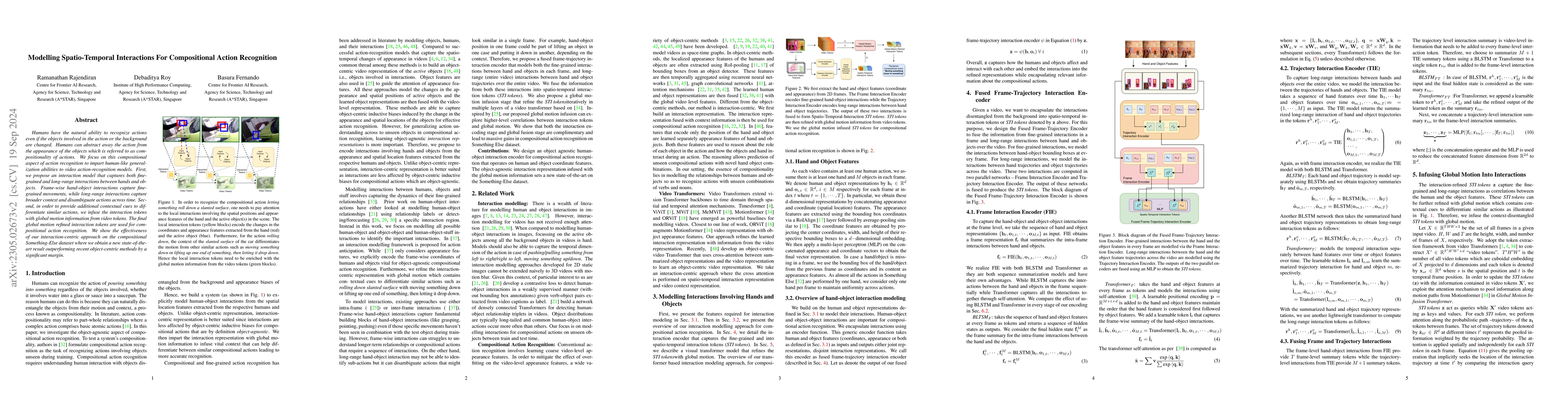 This paper proposes a spatial-temporal interaction encoder to model human-object interactions for compositional action recognition, achieving state-of-the-art results on the Something-Else dataset and outperforming recent methods. The approach demonstrates effective human-object-stuff interaction modeling, yielding comparable or better performance on standard action recognition datasets.