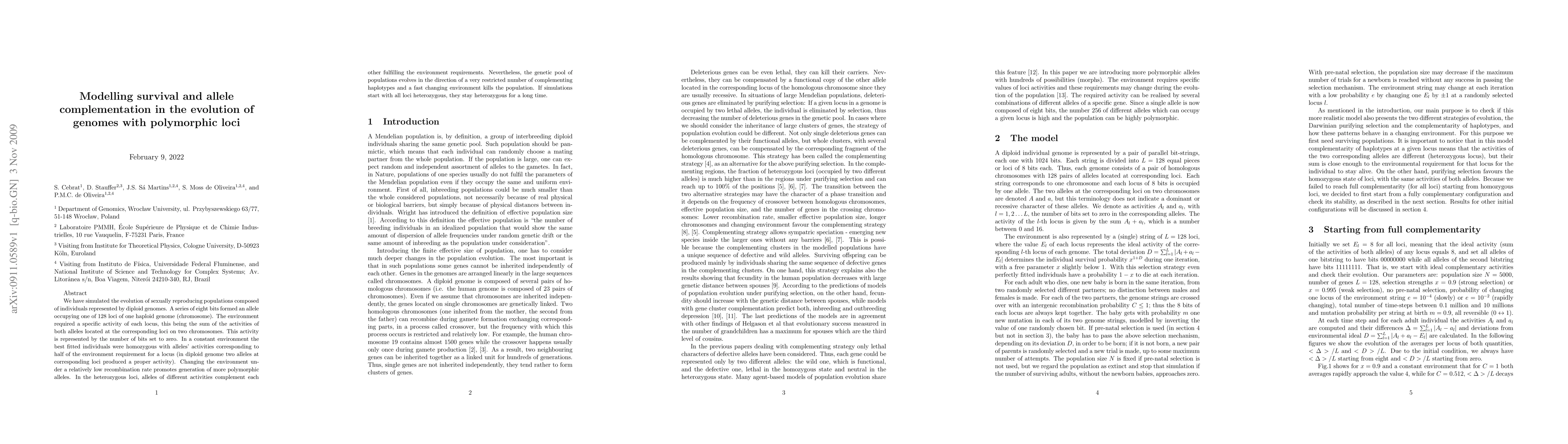 This research simulates the evolution of sexually reproducing populations with diploid genomes, where allele complementation in heterozygous loci enhances survival. Under stable conditions, homozygous individuals thrive, but environmental changes favoring polymorphism lead to diverse allele combinations, though populations still tend towards a limited number of complementary haplotypes.