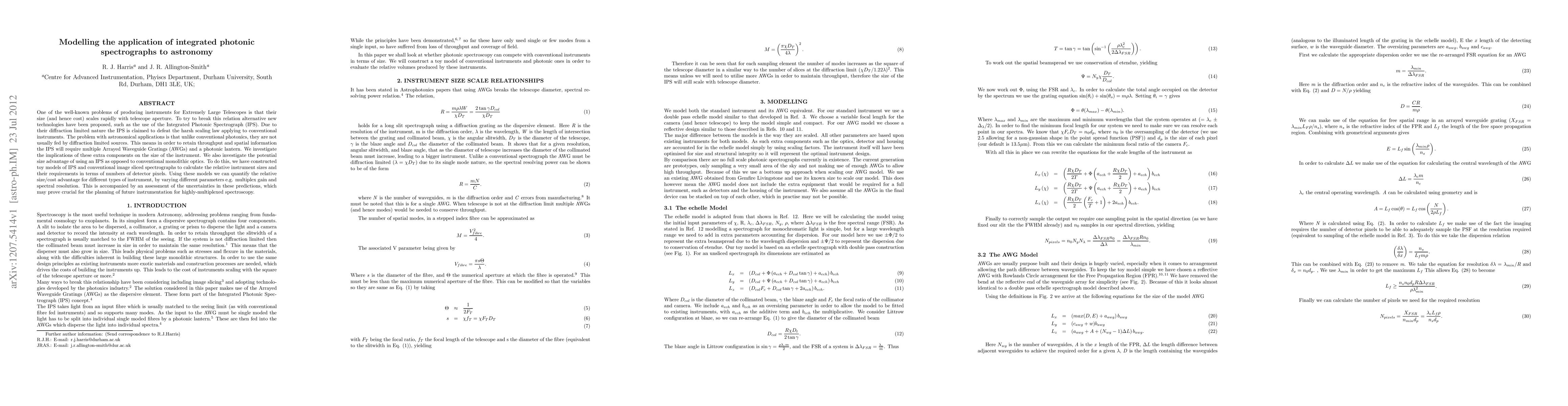 One of the well-known problems of producing instruments for Extremely Large Telescopes is that their size (and hence cost) scales rapidly with telescope aperture. To try to break this relation alternative new technologies have been proposed, such as the use of the Integrated Photonic Spectrograph (IPS). Due to their diffraction limited nature the IPS is claimed to defeat the harsh scaling law applying to conventional instruments. The problem with astronomical applications is that unlike conventional photonics, they are not usually fed by diffraction limited sources. This means in order to retain throughput and spatial information the IPS will require multiple Arrayed Waveguide Gratings (AWGs) and a photonic lantern. We investigate the implications of these extra components on the size of the instrument. We also investigate the potential size advantage of using an IPS as opposed to conventional monolithic optics. To do this, we have constructed toy models of IPS and conventional image sliced spectrographs to calculate the relative instrument sizes and their requirements in terms of numbers of detector pixels. Using these models we can quantify the relative size/cost advantage for different types of instrument, by varying different parameters e.g. multiplex gain and spectral resolution. This is accompanied by an assessment of the uncertainties in these predictions, which may prove crucial for the planning of future instrumentation for highly-multiplexed spectroscopy.