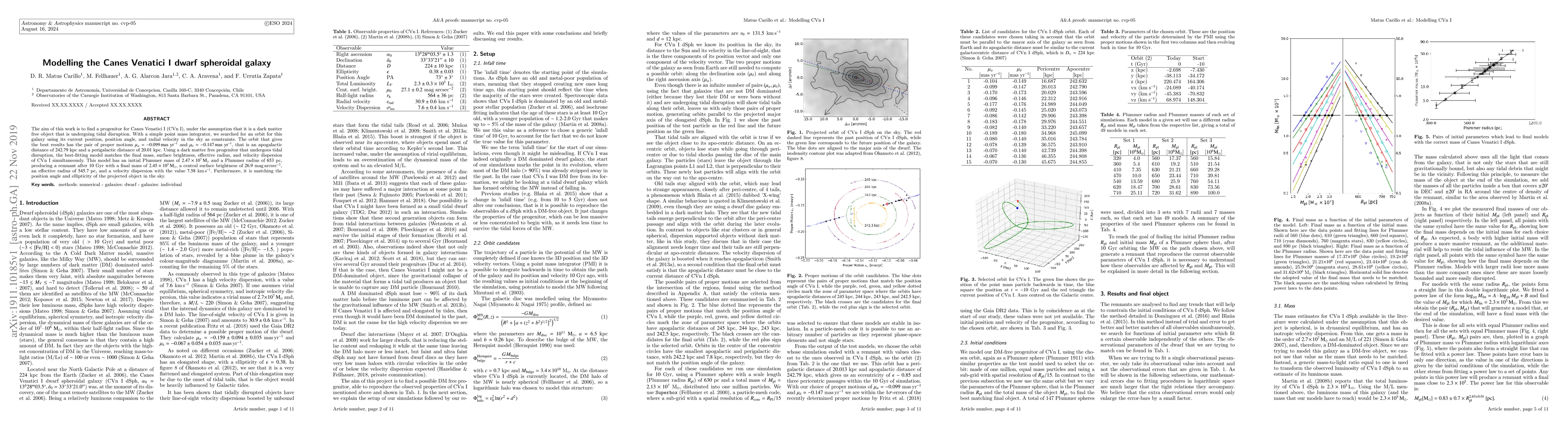 This study models Canes Venatici I (CVn I) as a dark matter-free dwarf galaxy undergoing tidal disruption, finding an orbit that matches its current observational parameters. The best-fitting progenitor model results in a remnant with properties matching CVn I's final mass, surface brightness, and velocity dispersion after 10 Gyr.