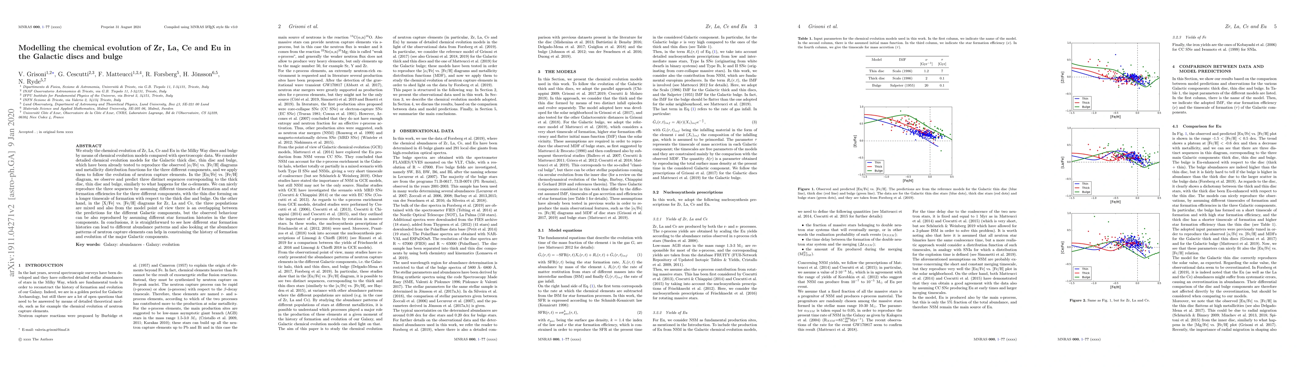 This research models the chemical evolution of neutron capture elements Zr, La, Ce, and Eu in the Milky Way's discs and bulge, finding distinct sequences in the [Eu/Fe] vs [Fe/H] diagram for each component. The study concludes that different star formation histories in the Galactic components lead to varied abundance patterns, aiding in the understanding of the formation and evolution of the Milky Way.
