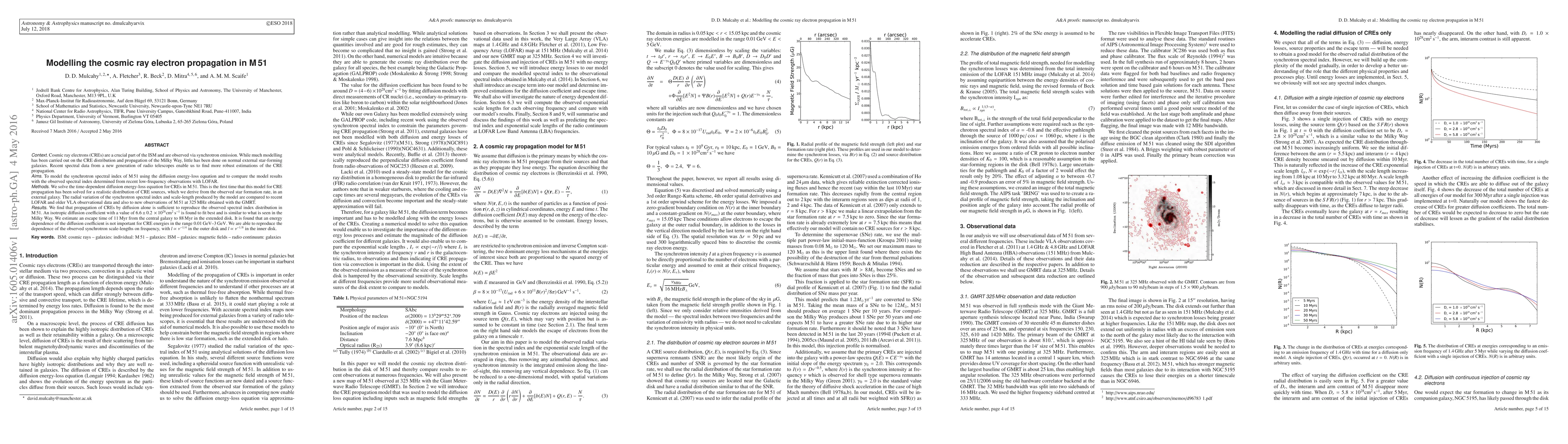 This paper models cosmic ray electron propagation in M 51 using a time-dependent diffusion equation, finding that isotropic diffusion alone can reproduce the observed synchrotron spectral index. An isotropic diffusion coefficient of $6.6\pm0.2\,\times 10^{28}\mathrm{cm}^2\,\mathrm{s}^{-1}$ fits best, similar to the Milky Way, with an estimated escape time ranging from 11 Myr to 88 Myr.