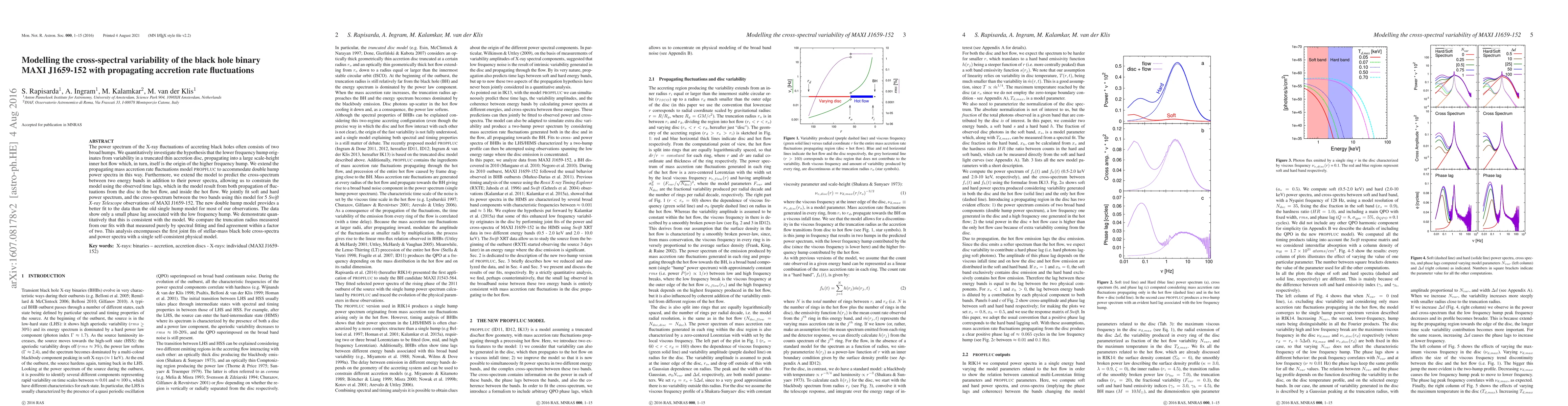 The power spectrum of the X-ray fluctuations of accreting black holes often consists of two broad humps. We quantitatively investigate the hypothesis that the lower frequency hump orig- inates from variability in a truncated thin accretion disc, propagating into a large scale-height inner hot flow which, in turn, itself is the origin of the higher frequency hump. We extend the propagating mass accretion rate fluctuations model PROPFLUC to accommodate double hump power spectra in this way. Furthermore, we extend the model to predict the cross-spectrum between two energy bands in addition to their power spectra, allowing us to constrain the model using the observed time lags, which in the model result from both propagation of fluc- tuations from the disc to the hot flow, and inside the hot flow. We jointly fit soft and hard power spectrum, and the cross-spectrum between the two bands using this model for 5 Swift X-ray Telescope observations of MAXI J1659-152. The new double hump model provides a better fit to the data than the old single hump model for most of our observations. The data show only a small phase lag associated with the low frequency hump. We demonstrate quan- titatively that this is consistent with the model. We compare the truncation radius measured from our fits with that measured purely by spectral fitting and find agreement within a factor of two. This analysis encompasses the first joint fits of stellar-mass black hole cross-spectra and power spectra with a single self-consistent physical model.