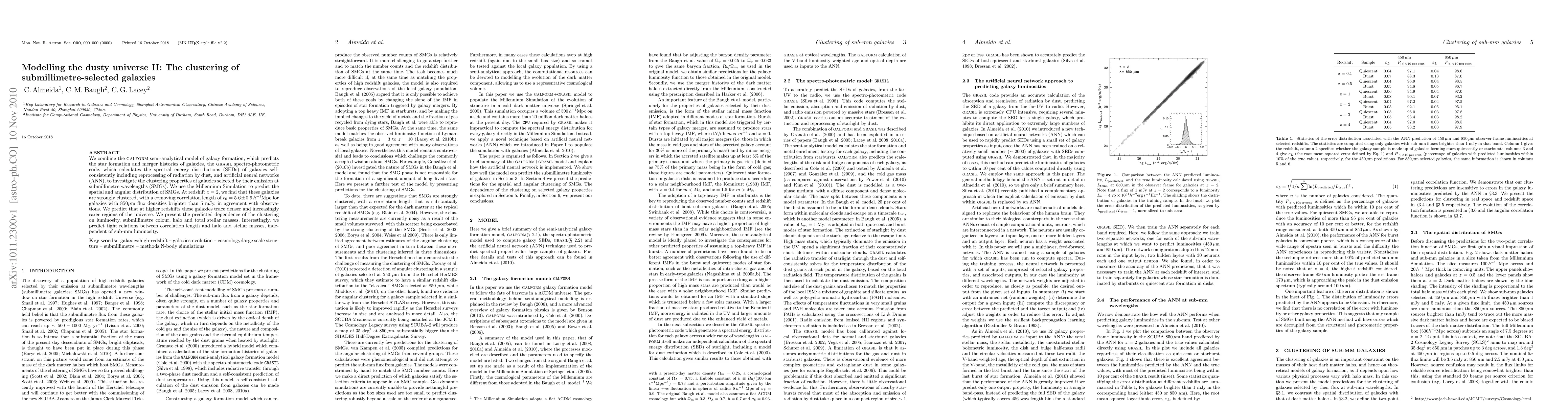 We combine the GALFORM semi-analytical model of galaxy formation, which predicts the star formation and merger histories of galaxies, the GRASIL spectro-photometric code, which calculates the spectral energy distributions (SEDs) of galaxies self-consistently including reprocessing of radiation by dust, and artificial neural networks (ANN), to investigate the clustering properties of galaxies selected by their emission at submillimetre wavelengths (SMGs). We use the Millennium Simulation to predict the spatial and angular distribution of SMGs. At redshift z = 2, we find that these galaxies are strongly clustered, with a comoving correlation length of r0 = 5.6 \pm 0.9 Mpc/h for galaxies with 850{\mu}m flux densities brighter than 5 mJy, in agreement with observations. We predict that at higher redshifts these galaxies trace denser and increasingly rarer regions of the universe. We present the predicted dependence of the clustering on luminosity, submillimetre colour, halo and total stellar masses. Interestingly, we predict tight relations between correlation length and halo and stellar masses, independent of sub-mm luminosity.