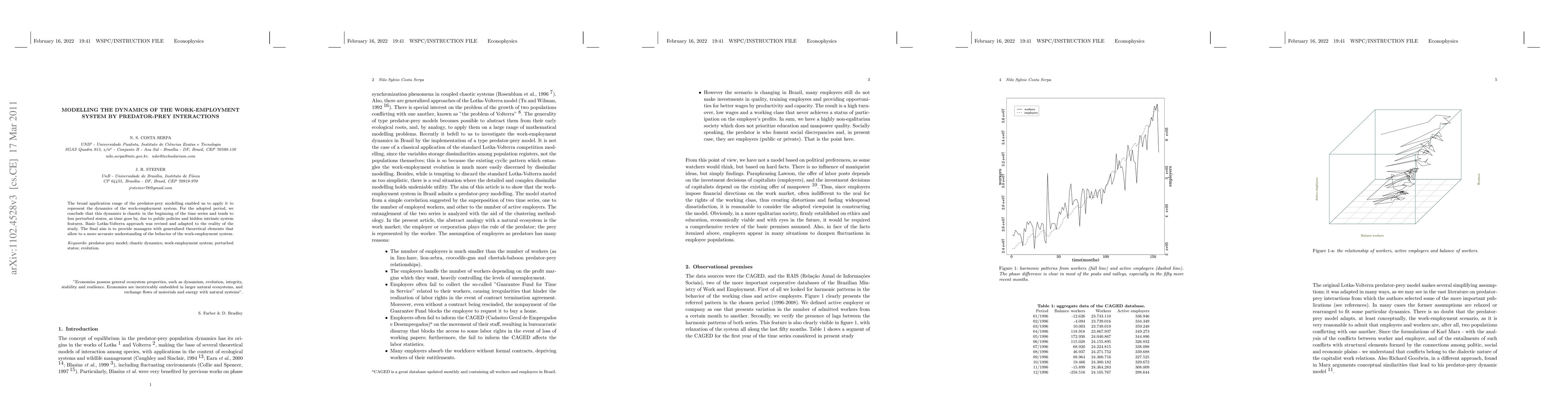 The broad application range of the predator-prey modelling enabled us to apply it to represent the dynamics of the work-employment system. For the adopted period, we conclude that this dynamics is chaotic in the beginning of the time series and tends to less perturbed states, as time goes by, due to public policies and hidden intrinsic system features. Basic Lotka-Volterra approach was revised and adapted to the reality of the study. The final aim is to provide managers with generalized theoretical elements that allow to a more accurate understanding of the behavior of the work-employment system.