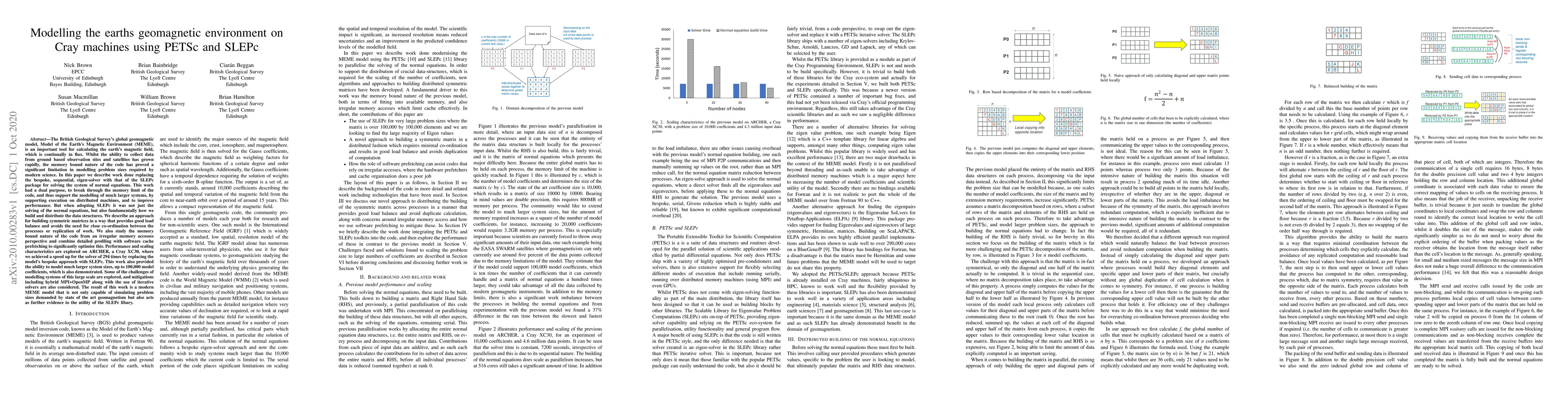 Researchers improved the British Geological Survey's global geomagnetic model by adopting the SLEPc package for solving eigen-solve equations, achieving a 294x speedup on a Cray XC30, and enabling modeling of larger system sizes up to 100,000 coefficients.