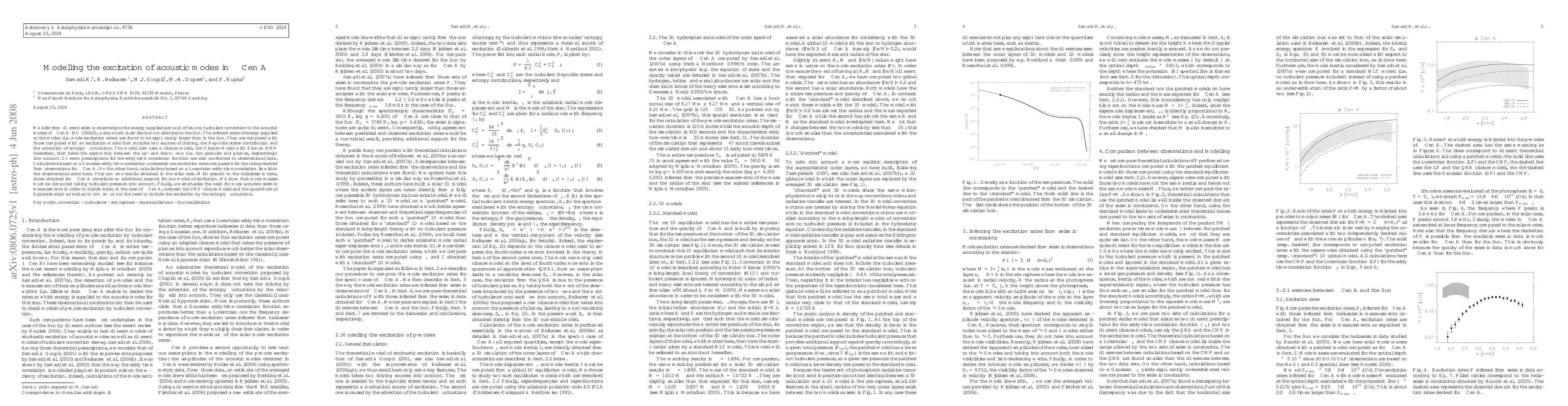 This paper investigates the excitation of acoustic modes in Alpha Cen A using seismic observations and models, finding higher excitation rates than in the Sun. It compares these rates with a model incorporating Reynolds stress and entropy fluctuations, confirming that a Lorentzian eddy-time correlation better fits observations than a Gaussian one.