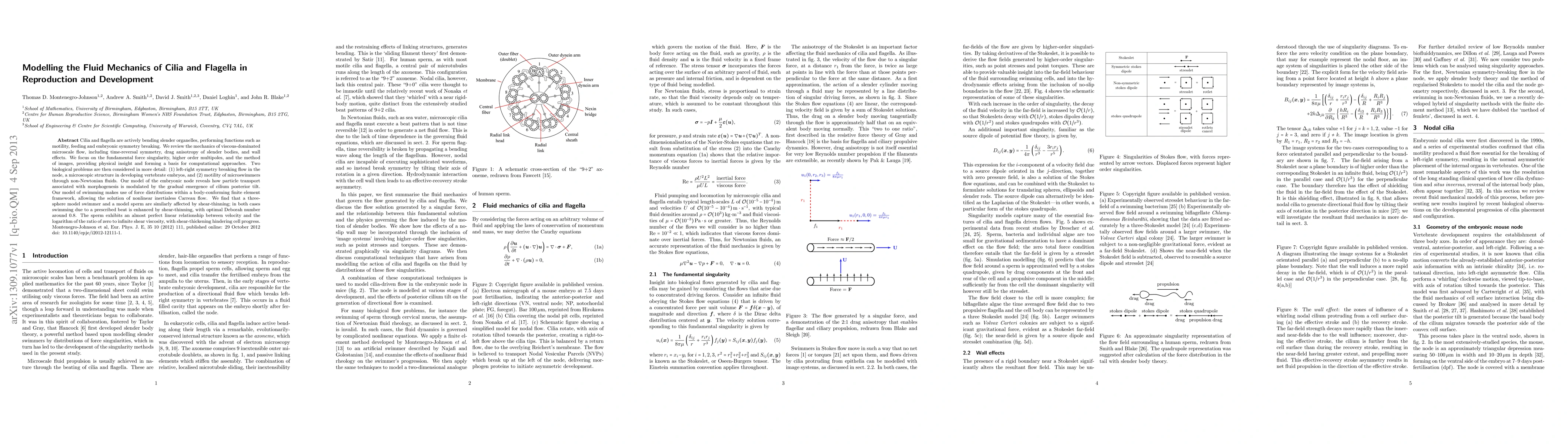 This paper models the fluid mechanics of cilia and flagella in reproduction and development, revealing how particle transport is modulated by cilium tilt and how non-Newtonian fluids affect microswimmer movement.