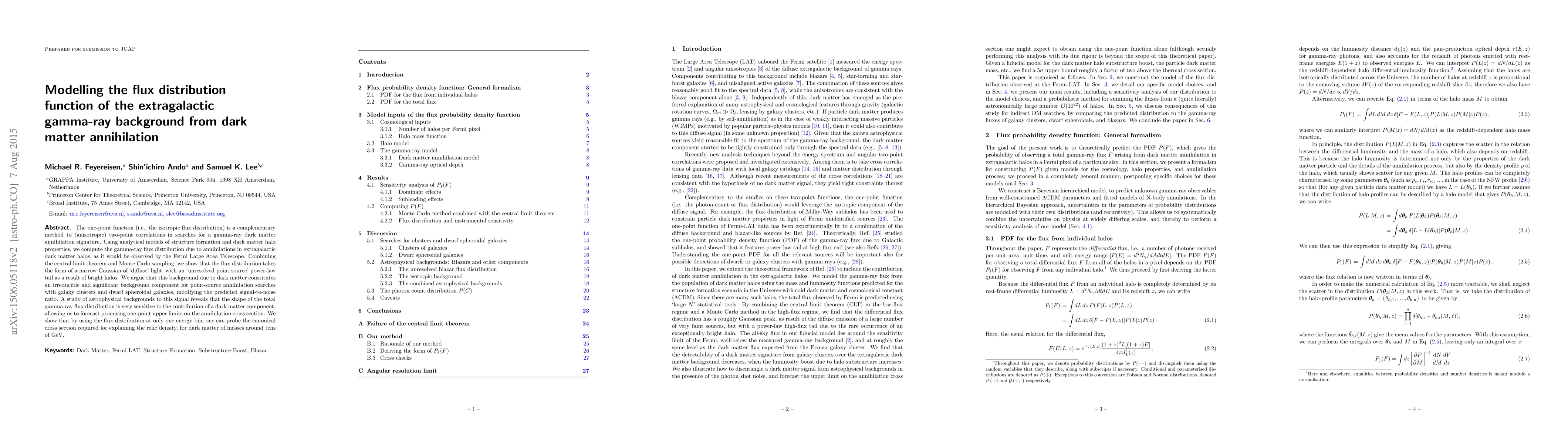 This paper models the gamma-ray flux distribution from extragalactic dark matter annihilation, showing it forms a Gaussian with a power-law tail due to bright halos. It highlights this background's significance in modifying signal-to-noise ratios for point-source searches, and forecasts upper limits on the annihilation cross section using one-point flux distribution analysis.