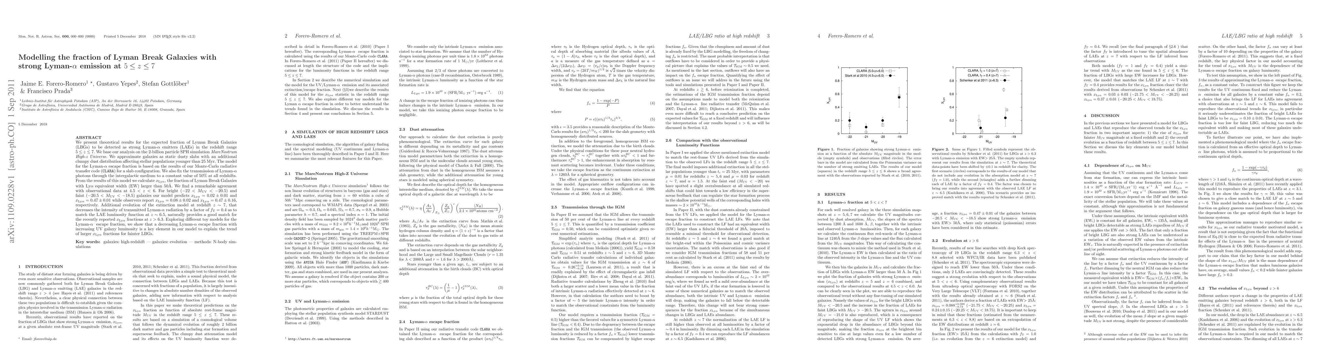 This paper models the fraction of Lyman Break Galaxies (LBGs) with strong Lyman alpha emission in the redshift range 5 < z < 7, finding a decreasing Lyman alpha escape fraction with increasing UV luminosity explains larger fractions for fainter galaxies. The model shows good agreement with observational data up to z ~ 6.3.