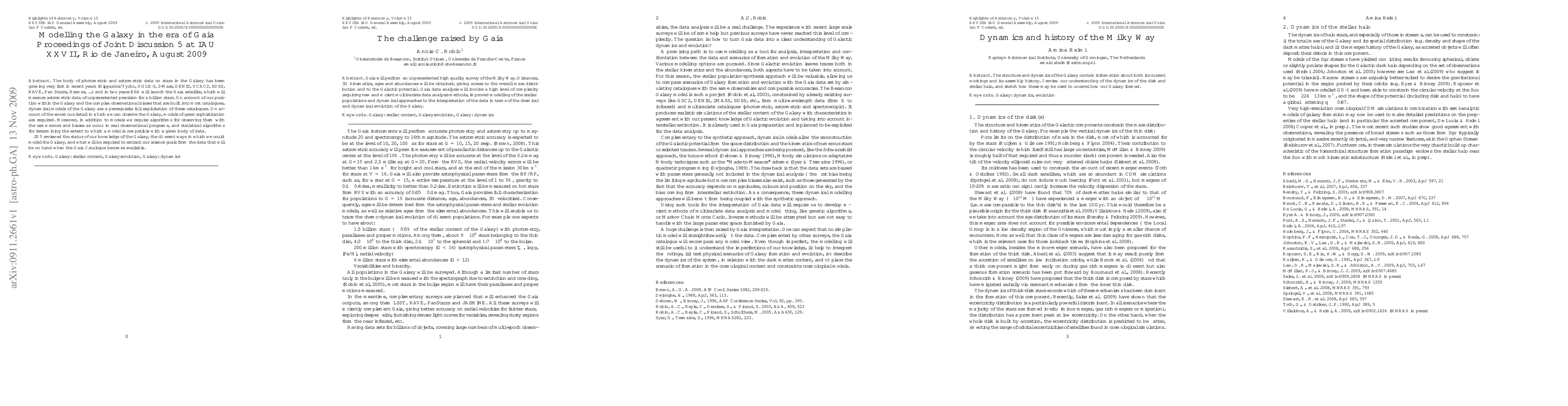 The body of photometric and astrometric data on stars in the Galaxy has been growing very fast in recent years (Hipparcos/Tycho, OGLE-3, 2-Mass, DENIS, UCAC2, SDSS, RAVE, Pan Starrs, Hermes, ...) and in two years ESA will launch the Gaia satellite, which will measure astrometric data of unprecedented precision for a billion stars. On account of our position within the Galaxy and the complex observational biases that are built into most catalogues, dynamical models of the Galaxy are a prerequisite full exploitation of these catalogues. On account of the enormous detail in which we can observe the Galaxy, models of great sophistication are required. Moreover, in addition to models we require algorithms for observing them with the same errors and biases as occur in real observational programs, and statistical algorithms for determining the extent to which a model is compatible with a given body of data. JD5 reviewed the status of our knowledge of the Galaxy, the different ways in which we could model the Galaxy, and what will be required to extract our science goals from the data that will be on hand when the Gaia Catalogue becomes available.