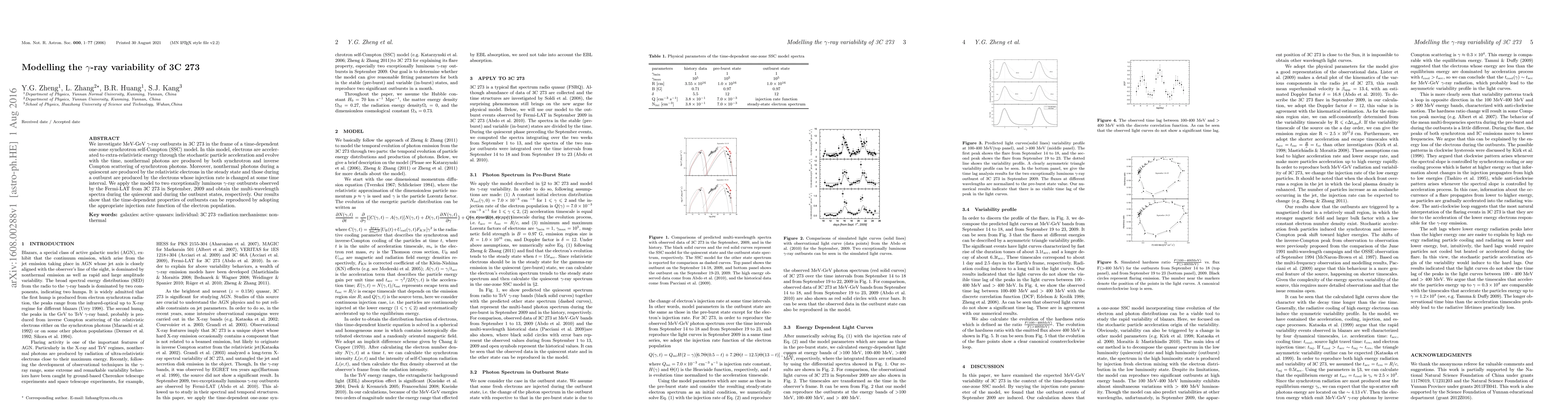 This paper models MeV-GeV $\gamma$-ray variability in 3C 273 using a time-dependent one-zone synchrotron self-Compton model, showing that the model can reproduce the observed outbursts by adjusting the electron injection rate. The study analyzes two significant $\gamma$-ray outbursts observed in 2009.