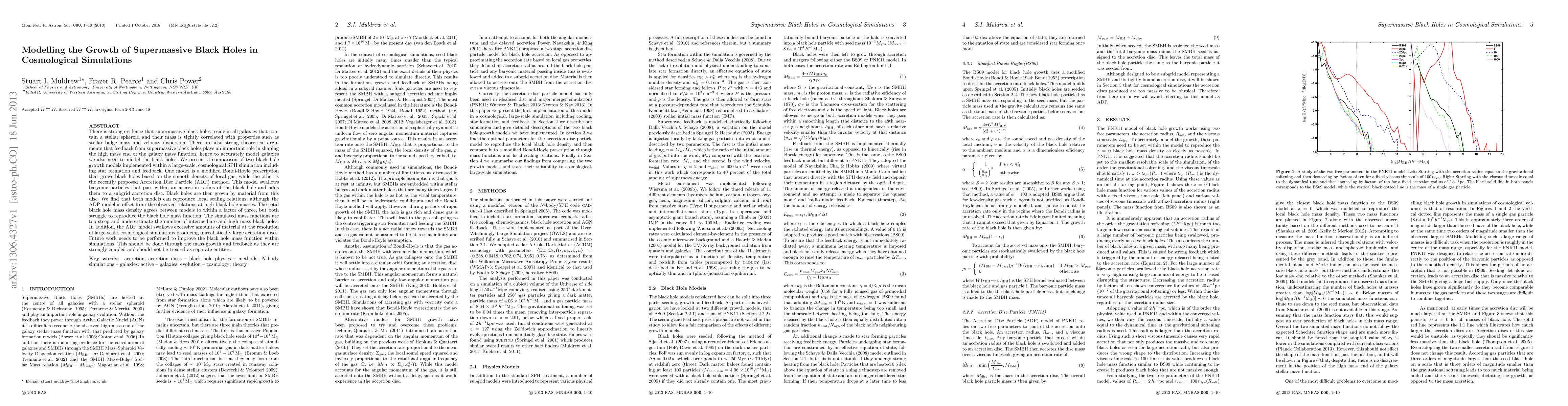 This paper compares two models for simulating supermassive black hole growth in cosmological simulations: a modified Bondi-Hoyle prescription and the ADP method. Both models can reproduce local scaling relations, but the ADP model struggles with high black hole masses and produces unrealistically large accretion discs. Future improvements are needed to better model the black hole mass function, focusing on mass growth and feedback mechanisms.