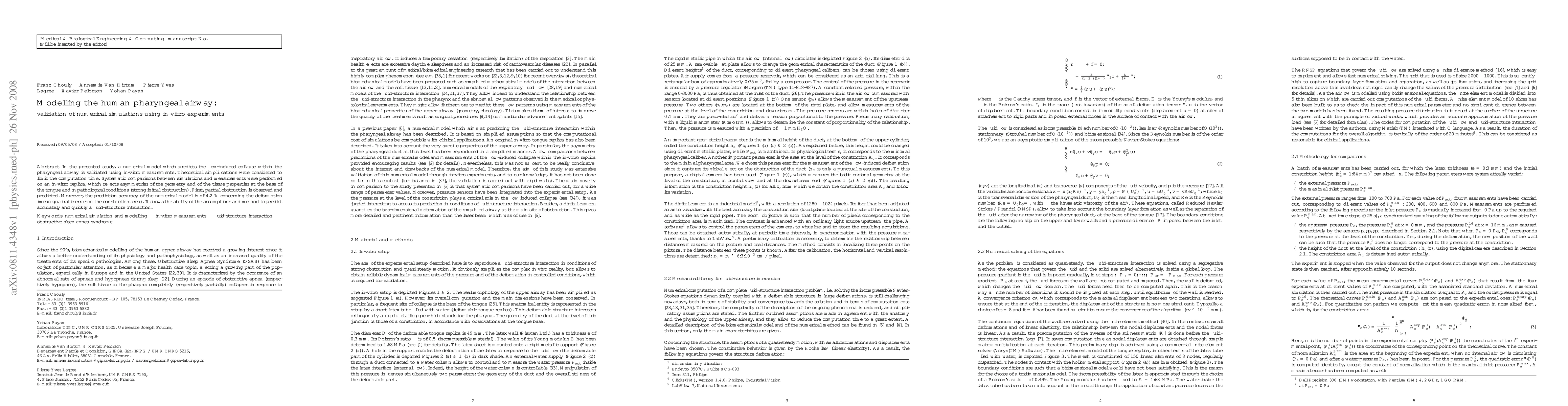In the presented study, a numerical model which predicts the flow-induced collapse within the pharyngeal airway is validated using in vitro measurements. Theoretical simplifications were considered to limit the computation time. Systematic comparisons between simulations and measurements were performed on an in vitro replica, which reflects asymmetries of the geometry and of the tissue properties at the base of the tongue and in pathological conditions (strong initial obstruction). First, partial obstruction is observed and predicted. Moreover, the prediction accuracy of the numerical model is of 4.2% concerning the deformation (mean quadratic error on the constriction area). It shows the ability of the assumptions and method to predict accurately and quickly a fluid-structure interaction.