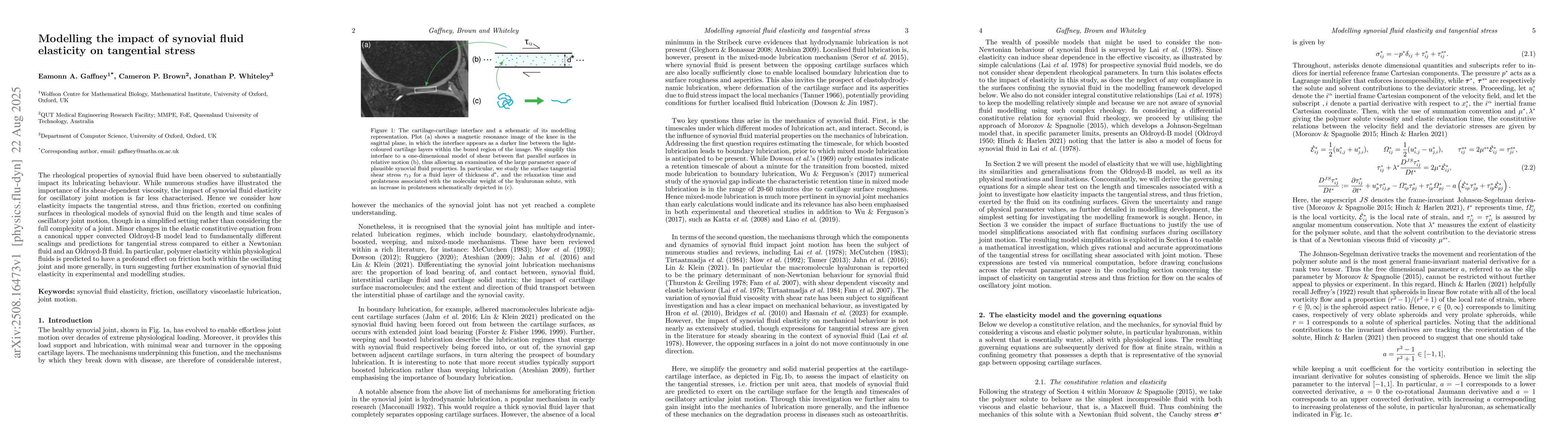The rheological properties of synovial fluid have been observed to substantially impact its lubricating behaviour. While numerous studies have illustrated the importance of its shear-dependent viscosity, the impact of synovial fluid elasticity for oscillatory joint motion is far less characterised. Hence we consider how elasticity impacts the tangential stress, and thus friction, exerted on confining surfaces in rheological models of synovial fluid on the length and time scales of oscillatory joint motion, though in a simplified setting rather than considering the full complexity of a joint. Minor changes in the elastic constitutive equation from a canonical upper convected Oldroyd-B model lead to fundamentally different scalings and predictions for tangential stress compared to either a Newtonian fluid and an Oldroyd-B fluid. In particular, polymer elasticity within physiological fluids is predicted to have a profound effect on friction both within the oscillating joint and more generally, in turn suggesting further examination of synovial fluid elasticity in experimental and modelling studies.