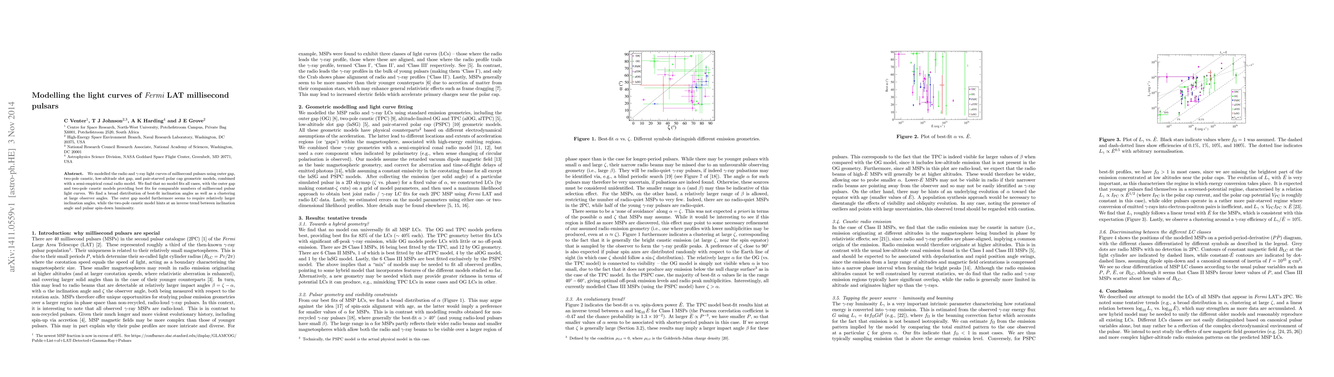 We modelled the radio and gamma-ray light curves of millisecond pulsars using outer gap, two-pole caustic, low-altitude slot gap, and pair-starved polar cap geometric models, combined with a semi-empirical conal radio model. We find that no model fits all cases, with the outer gap and two-pole caustic models providing best fits for comparable numbers of millisecond pulsar light curves. We find a broad distribution of best-fit inclination angles as well as a clustering at large observer angles. The outer gap model furthermore seems to require relatively larger inclination angles, while the two-pole caustic model hints at an inverse trend between inclination angle and pulsar spin-down luminosity.