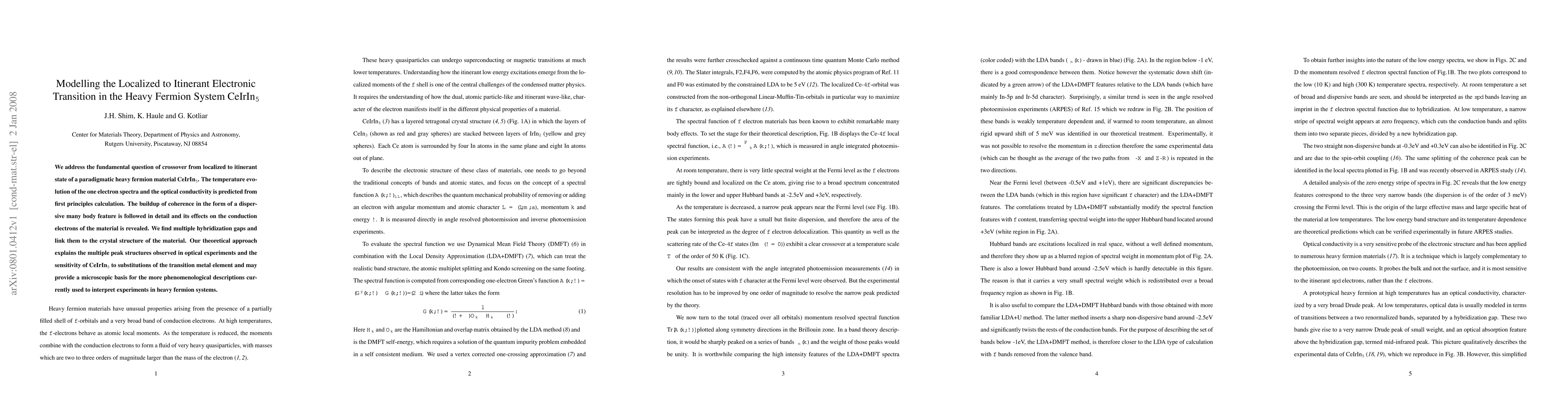 This paper explores the transition from localized to itinerant electronic states in CeIrIn5 using first principles calculations, revealing multiple hybridization gaps and explaining observed optical conductivity features and peak structures. The theoretical model provides insights into the material's sensitivity to transition metal substitutions.