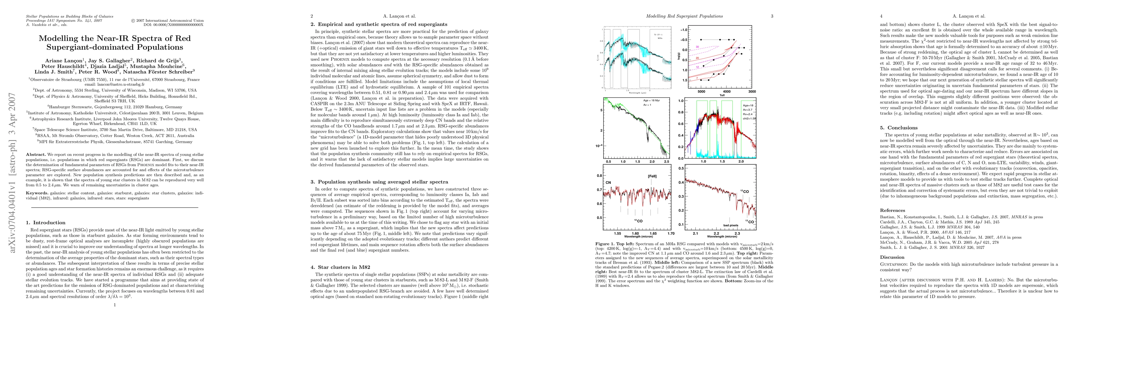 This paper advances the modelling of near-IR spectra for young stellar populations dominated by red supergiants, utilizing new PHOENIX model spectra to determine RSG parameters. The study demonstrates accurate reproduction of young star clusters' spectra in M82, though it highlights uncertainties in cluster ages.
