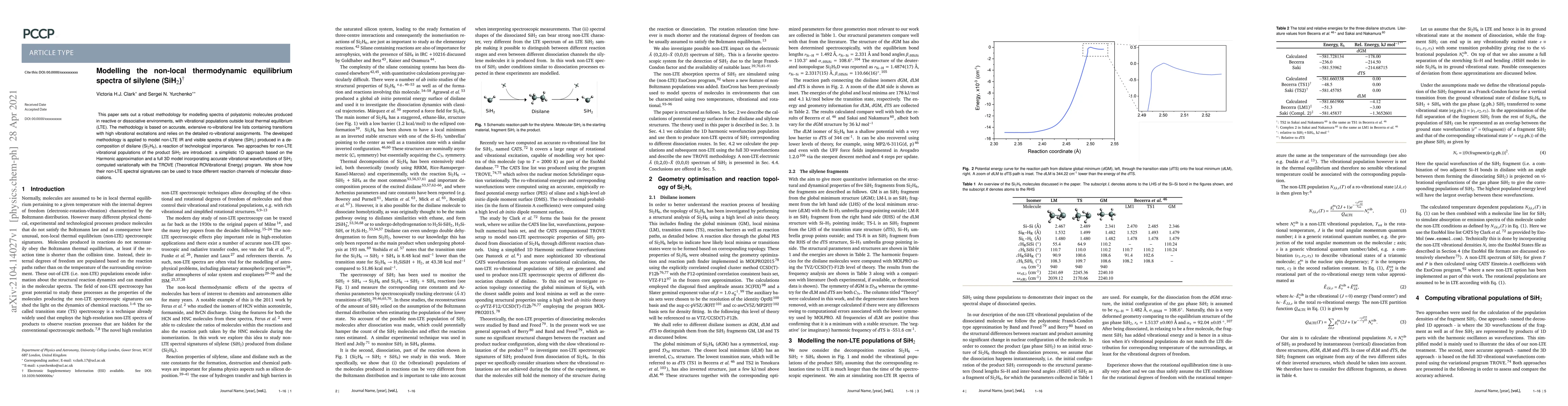 This paper sets out a robust methodology for modelling spectra of polyatomic molecules produced in reactive or dissociative environments, with vibrational populations outside local thermal equilibrium (LTE). The methodology is based on accurate, extensive ro-vibrational line lists containing transitions with high vibrational excitations and relies on the detailed ro-vibrational assignments. The developed methodology is applied to model non-LTE IR and visible spectra of silylene (SiH$_2$) produced in a decomposition of disilane (Si$_2$H$_6$), a reaction of technological importance. Two approaches for non-LTE vibrational populations of the product SiH$_2$ are introduced: a simplistic 1D approach based on the Harmonic approximation and a full 3D model incorporating accurate vibrational wavefunctions of SiH$_2$ computed variationally with the TROVE (Theoretical ROVibrational Energy) program. We show how their non-LTE spectral signatures can be used to trace different reaction channels of molecular dissociations.