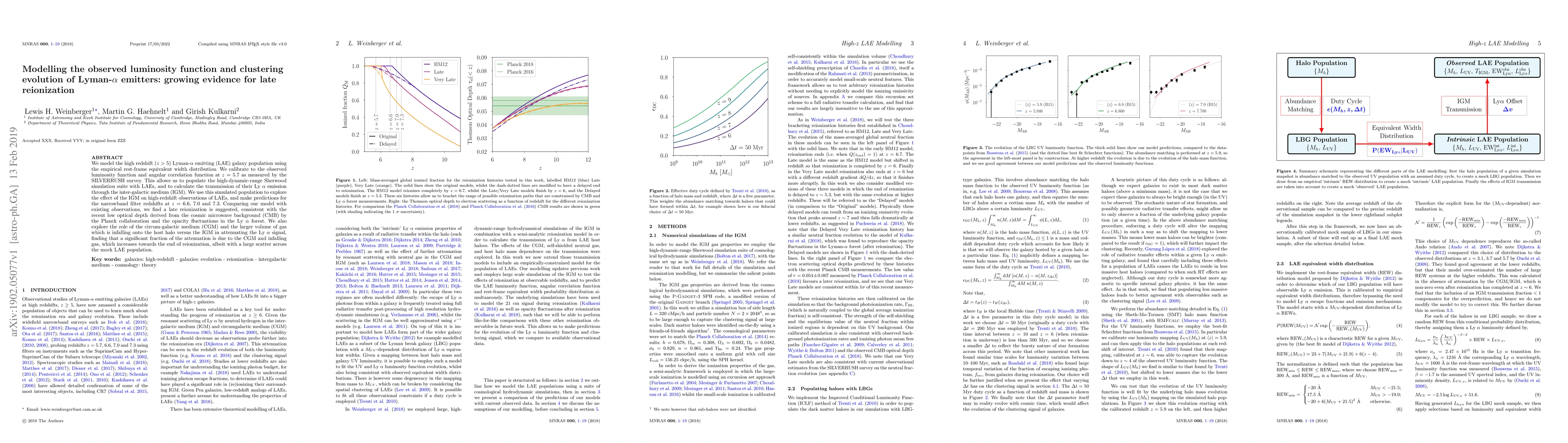We model the high redshift (z > 5) Lyman-$\alpha$ emitting (LAE) galaxy population using the empirical rest-frame equivalent width distribution. We calibrate to the observed luminosity function and angular correlation function at z = 5.7 as measured by the SILVERRUSH survey. This allows us to populate the high-dynamic-range Sherwood simulation suite with LAEs, and to calculate the transmission of their Ly $\alpha$ emission through the inter-galactic medium (IGM). We use this simulated population to explore the effect of the IGM on high-redshift observations of LAEs, and make predictions for the narrowband filter redshifts at z = 6.6, 7.0 and 7.3. Comparing our model with existing observations, we find a late reionization is suggested, consistent with the recent low optical depth derived from the cosmic microwave background (CMB) by the Planck collaboration and the opacity fluctuations in the Ly $\alpha$ forest. We also explore the role of the circum-galactic medium (CGM) and the larger volume of gas which is infalling onto the host halo versus the IGM in attenuating the Ly $\alpha$ signal, finding that a significant fraction of the attenuation is due to the CGM and infalling gas, which increases towards the end of reionization, albeit with a large scatter across the mock LAE population.