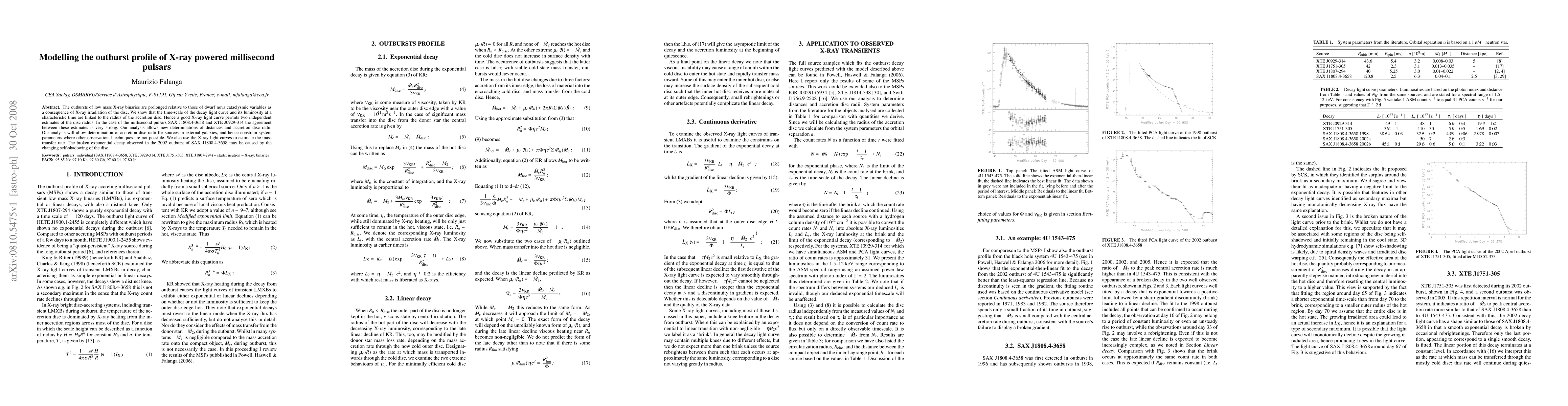 The outbursts of low mass X-ray binaries are prolonged relative to those of dwarf nova cataclysmic variables as a consequence of X-ray irradiation of the disc. We show that the time-scale of the decay light curve and its luminosity at a characteristic time are linked to the radius of the accretion disc. Hence a good X-ray light curve permits two independent estimates of the disc radius. In the case of the millisecond pulsars SAX J1808.4-3658 and XTE J0929-314 the agreement between these estimates is very strong. Our analysis allows new determinations of distances and accretion disc radii. Our analysis will allow determination of accretion disc radii for sources in external galaxies, and hence constrain system parameters where other observational techniques are not possible. We also use the X-ray light curves to estimate the mass transfer rate. The broken exponential decay observed in the 2002 outburst of SAX J1808.4-3658 may be caused by the changing self-shadowing of the disc.