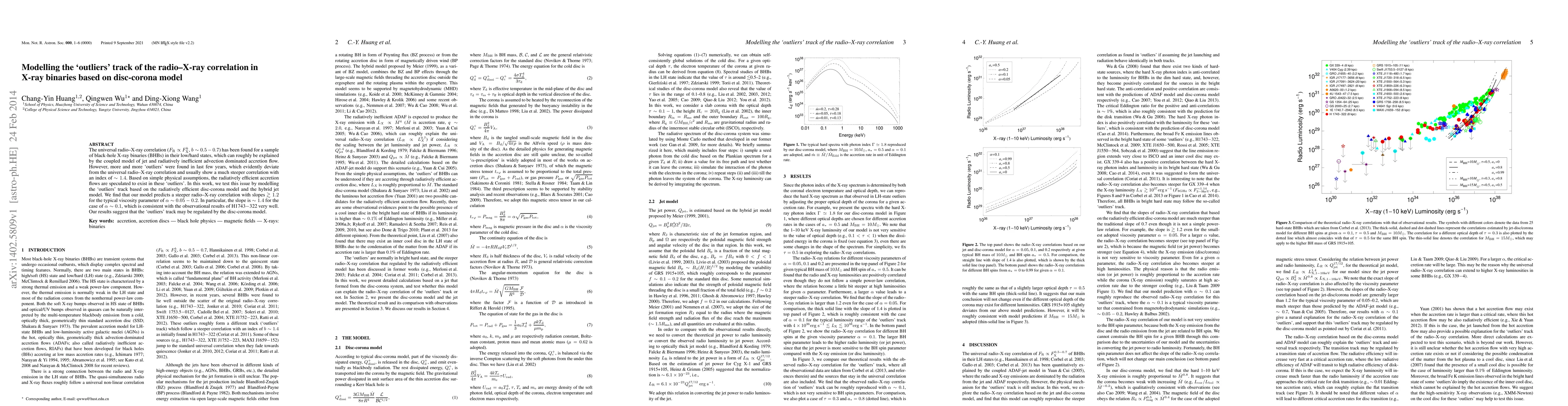 The universal radio--X-ray correlation (F_R \propto F_X^{b}, b~0.5-0.7) has been found for a sample of black-hole X-ray binaries (BHBs) in their low/hard states, which can roughly be explained by the coupled model of jet and radiatively inefficient advection dominated accretion flow. However, more and more `outliers' were found in last few years, which evidently deviate from the universal radio-X-ray correlation and usually show a much steeper correlation with an index of ~1.4. Based on simple physical assumptions, the radiatively efficient accretion flows are speculated to exist in these `outliers'. In this work, we test this issue by modelling the `outliers' track based on the radiatively efficient disc-corona model and the hybrid jet model. We find that our model predicts a steeper radio--X-ray correlation with slopes >~1.2 for the typical viscosity parameter of \alpha~0.05-0.2. In particular, the slope is ~1.4 for the case of \alpha~0.1, which is consistent with the observational results of H1743-322 very well. Our results suggest that the `outliers' track may be regulated by the disc-corona model.