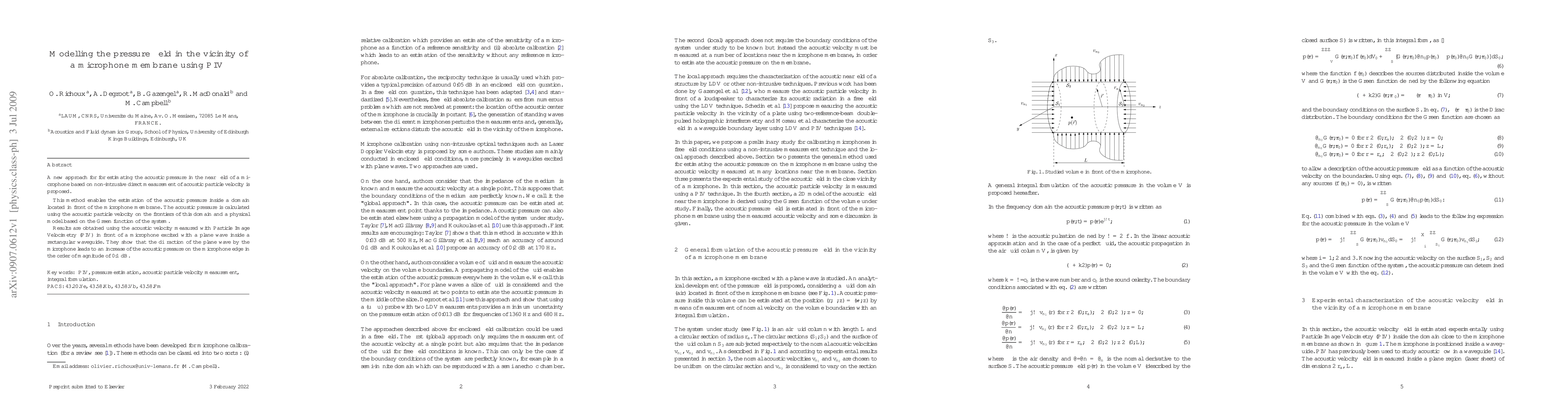 The paper presents an innovative method for calculating acoustic pressure using PIV-measured particle velocities and a Green function-based physical model, offering a non-intrusive approach for studying microphone near-field acoustics.
