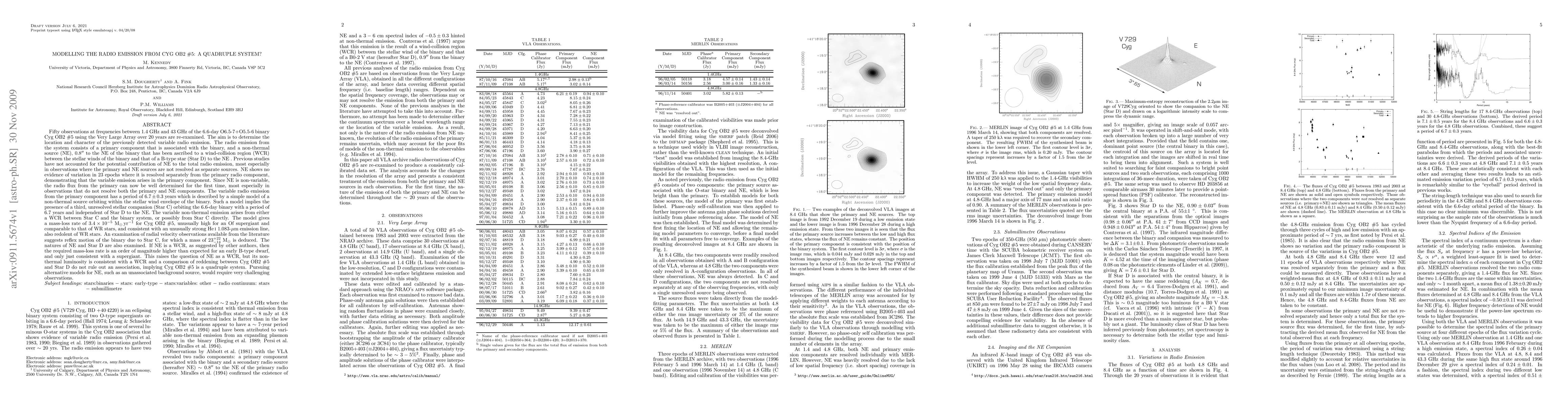 Fifty archival radio observations of the supergiant binary Cyg OB2 #5 using the Very Large Array over 20 years are re-examined to determine the location and character of the previously detected variable radio emission. The radio emission from the system consists of a primary component that is associated with the binary, and a non-thermal source (NE) that has been ascribed to a wind-collision region (WCR) between the stellar winds of the binary and that of a B-type star (Star D) to the NE. NE shows no evidence of variation in 23 epochs where it is resolved separately from the primary radio component, demonstrating that the variable emission arises in the primary. Since NE is non-variable, the radio flux from the primary can now be well determined for the first time, most especially in observations that do not resolve both the primary and NE components. The variable radio emission from the primary has a period of 6.7+/-0.3 years which is described by a simple model of a non-thermal source orbiting within the stellar wind envelope of the binary. Such a model implies the presence of a third, unresolved stellar companion (Star C) orbiting the 6.6-day binary with a period of 6.7 years. The variable non-thermal emission arises from either a WCR between Star C and the binary system, or possibly from Star C directly. The model gives a mass-loss rate of 3.4 x 10^{-5} solar mass/yr for Cyg OB2 #5, unusually high for an Of supergiant and comparable to that of WR stars, and consistent with an unusually strong He I 1.083-micron emission line, also redolent of WR stars. An examination of radial velocity observations suggests reflex motion of the binary due to Star C. The natures of NE and Star D are also examined. (abridged)