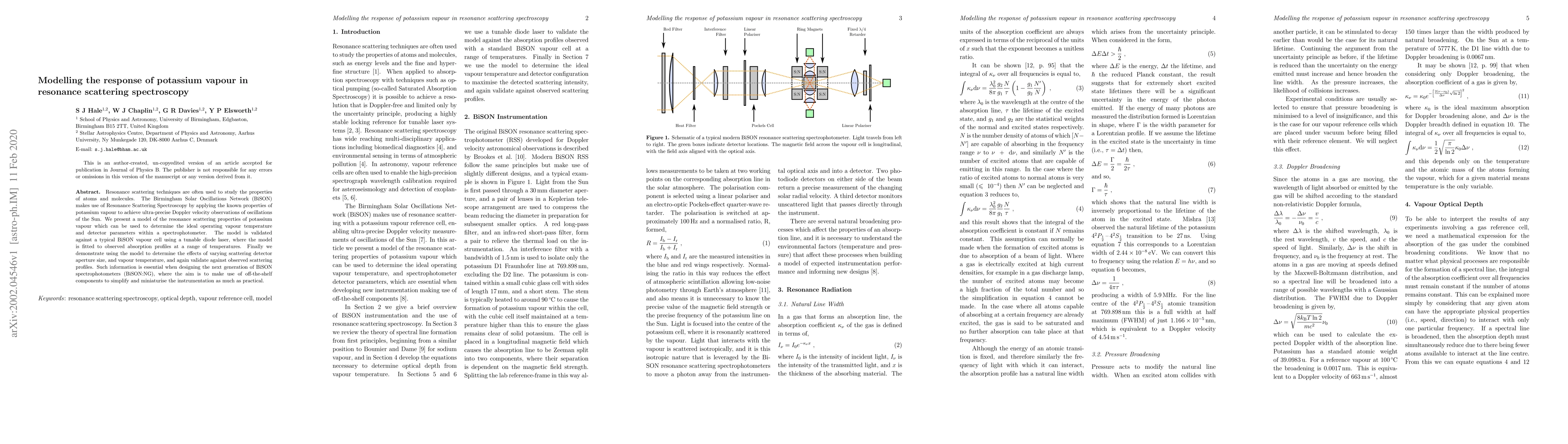 Resonance scattering techniques are often used to study the properties of atoms and molecules. The Birmingham Solar Oscillations Network (BiSON) makes use of Resonance Scattering Spectroscopy by applying the known properties of potassium vapour to achieve ultra-precise Doppler velocity observations of oscillations of the Sun. We present a model of the resonance scattering properties of potassium vapour which can be used to determine the ideal operating vapour temperature and detector parameters within a spectrophotometer. The model is validated against a typical BiSON vapour cell using a tunable diode laser, where the model is fitted to observed absorption profiles at a range of temperatures. Finally we demonstrate using the model to determine the effects of varying scattering detector aperture size, and vapour temperature, and again validate against observed scattering profiles. Such information is essential when designing the next generation of BiSON spectrophotometers (BiSON:NG), where the aim is to make use of off-the-shelf components to simplify and miniaturise the instrumentation as much as practical.