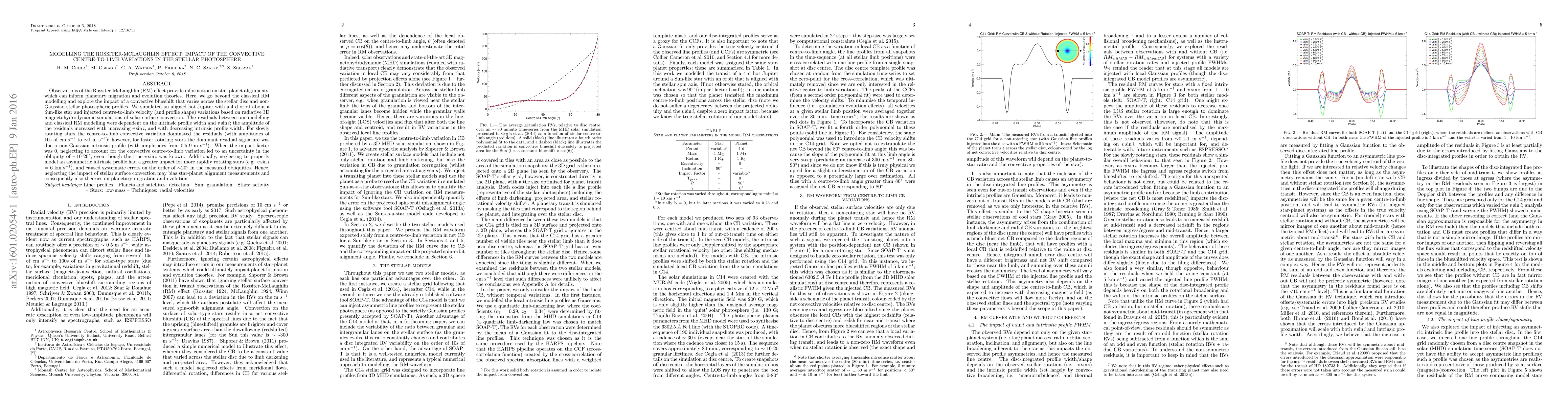 This paper models the Rossiter-McLaughlin effect considering convective centre-to-limb variations and non-Gaussian stellar photospheric profiles, finding significant residuals that depend on stellar rotation and intrinsic profile width. Neglecting these factors can introduce substantial uncertainties in star-planet alignment measurements and theories on planetary migration and evolution.