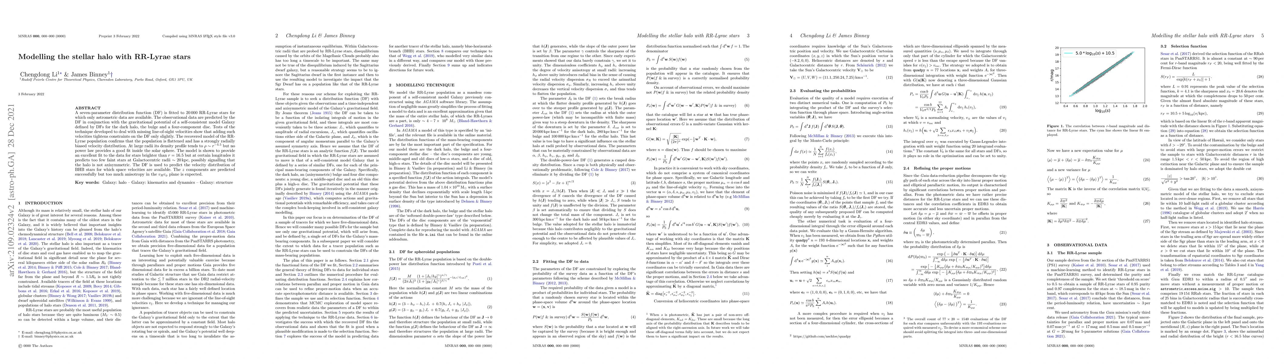 A seven-parameter distribution function (DF) is fitted to $20\,000$ RR-Lyrae stars for which only astrometric data are available. The observational data are predicted by the DF in conjunction with the gravitational potential of a self-consistent model Galaxy defined by DFs for the dark halo, the bulge and a four-component disc. Tests of the technique developed to deal with missing line-of-sight velocities show that adding such velocities tightens constraints on the DF only slightly. The recovered model of the RR-Lyrae population confirms that the population is flattened and has a strongly radially biased velocity distribution. At large radii its density profile tends to $\rho\sim r^{-4.5}$ but no power law provides a good fit inside the solar sphere. The model is shown to provide an excellent fit to the data for stars brighter than $r=16.5$ but at certain longitudes it predicts too few faint stars at Galactocentric radii $\sim20\mbox{kpc}$, possibly signalling that the halo is not axisymmetric. The DF is used to predict the velocity distribution of BHB stars for which space velocities are available. The $z$ components are predicted successfully but too much anisotropy in the $v_Rv_\phi$ plane is expected.