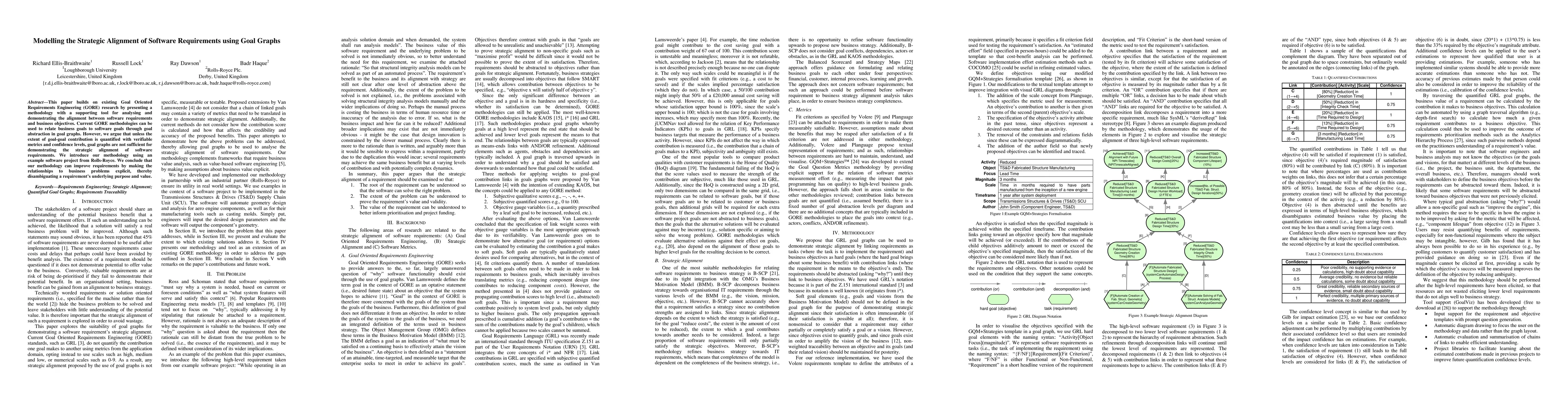 This paper builds on existing Goal Oriented Requirements Engineering (GORE) research by presenting a methodology with a supporting tool for analysing and demonstrating the alignment between software requirements and business objectives. Current GORE methodologies can be used to relate business goals to software goals through goal abstraction in goal graphs. However, we argue that unless the extent of goal-goal contribution is quantified with verifiable metrics and confidence levels, goal graphs are not sufficient for demonstrating the strategic alignment of software requirements. We introduce our methodology using an example software project from Rolls-Royce. We conclude that our methodology can improve requirements by making the relationships to business problems explicit, thereby disambiguating a requirement's underlying purpose and value.