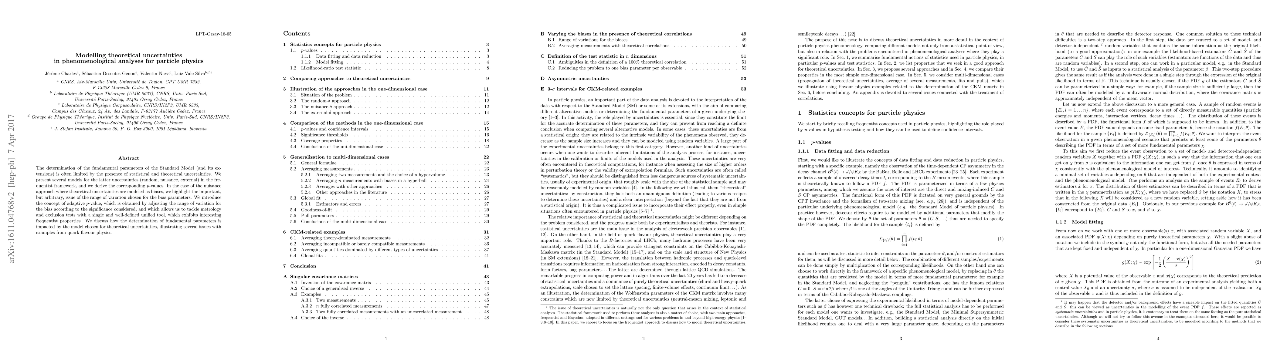 The determination of the fundamental parameters of the Standard Model (and its extensions) is often limited by the presence of statistical and theoretical uncertainties. We present several models for the latter uncertainties (random, nuisance, external) in the frequentist framework, and we derive the corresponding $p$-values. In the case of the nuisance approach where theoretical uncertainties are modeled as biases, we highlight the important, but arbitrary, issue of the range of variation chosen for the bias parameters. We introduce the concept of adaptive $p$-value, which is obtained by adjusting the range of variation for the bias according to the significance considered, and which allows us to tackle metrology and exclusion tests with a single and well-defined unified tool, which exhibits interesting frequentist properties. We discuss how the determination of fundamental parameters is impacted by the model chosen for theoretical uncertainties, illustrating several issues with examples from quark flavour physics.