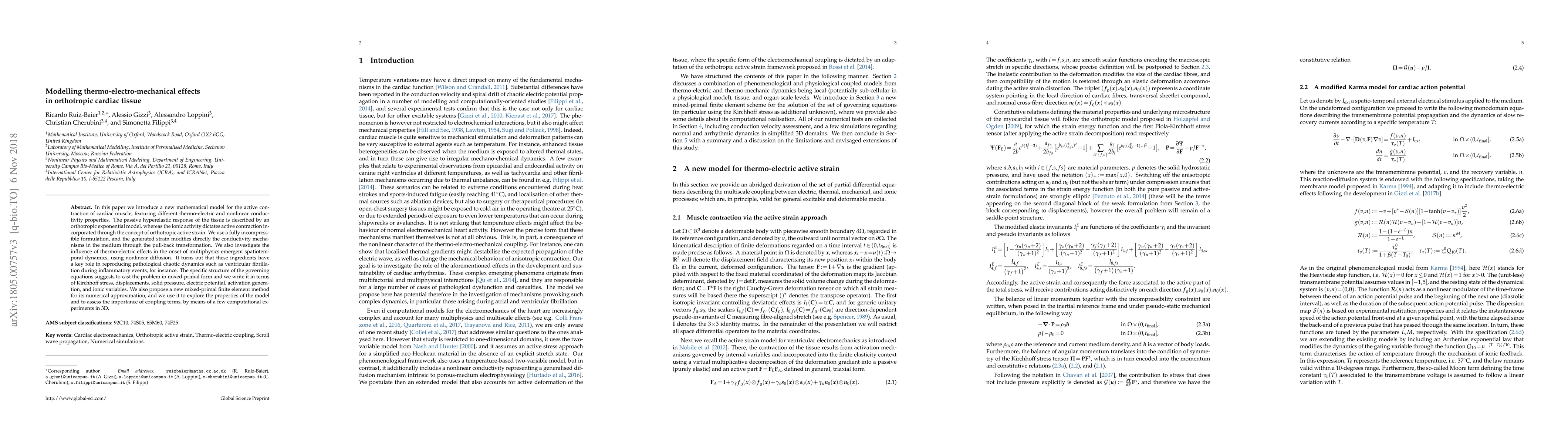This research advances a theoretical framework for cardiac electromechanics that incorporates active strain, anisotropic and nonlinear diffusion, and thermo-electrical coupling. It extends porous medium electrophysiology to cardiac electromechanics, preserving material frame invariance and equilibrium constraints, and introduces a mixed-primal method for hyperelasticity.