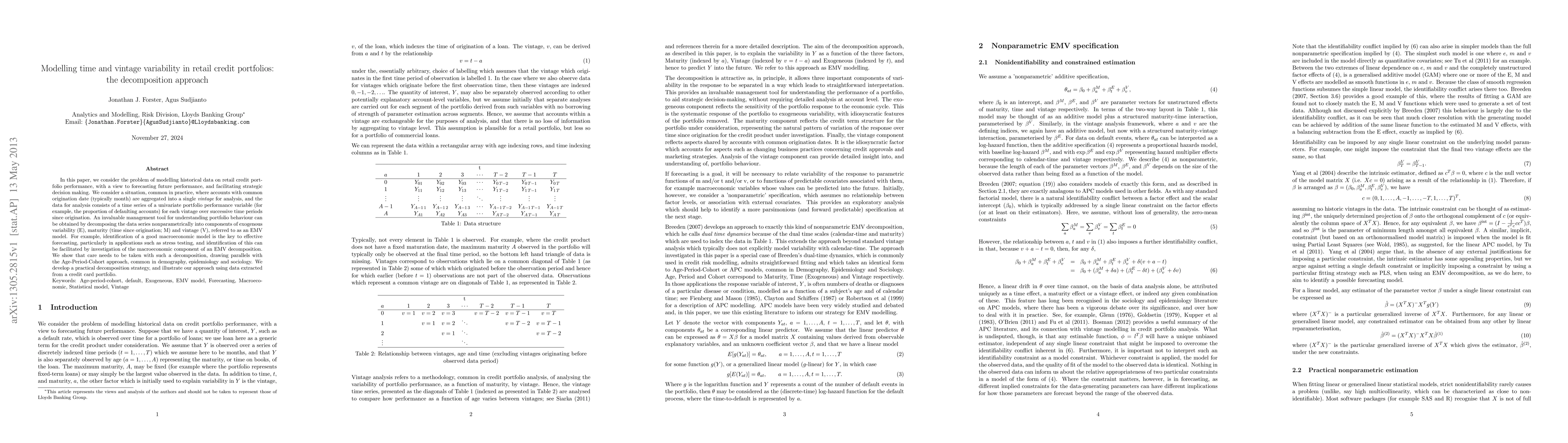 In this paper, we consider the problem of modelling historical data on retail credit portfolio performance, with a view to forecasting future performance, and facilitating strategic decision making. We consider a situation, common in practice, where accounts with common origination date (typically month) are aggregated into a single vintage for analysis, and the data for analysis consists of a time series of a univariate portfolio performance variable (for example, the proportion of defaulting accounts) for each vintage over successive time periods since origination. An invaluable management tool for understanding portfolio behaviour can be obtained by decomposing the data series nonparametrically into components of exogenous variability (E), maturity (time since origination; M) and vintage (V), referred to as an EMV model. For example, identification of a good macroeconomic model is the key to effective forecasting, particularly in applications such as stress testing, and identification of this can be facilitated by investigation of the macroeconomic component of an EMV decomposition. We show that care needs to be taken with such a decomposition, drawing parallels with the Age-Period-Cohort approach, common in demography, epidemiology and sociology. We develop a practical decomposition strategy, and illustrate our approach using data extracted from a credit card portfolio.