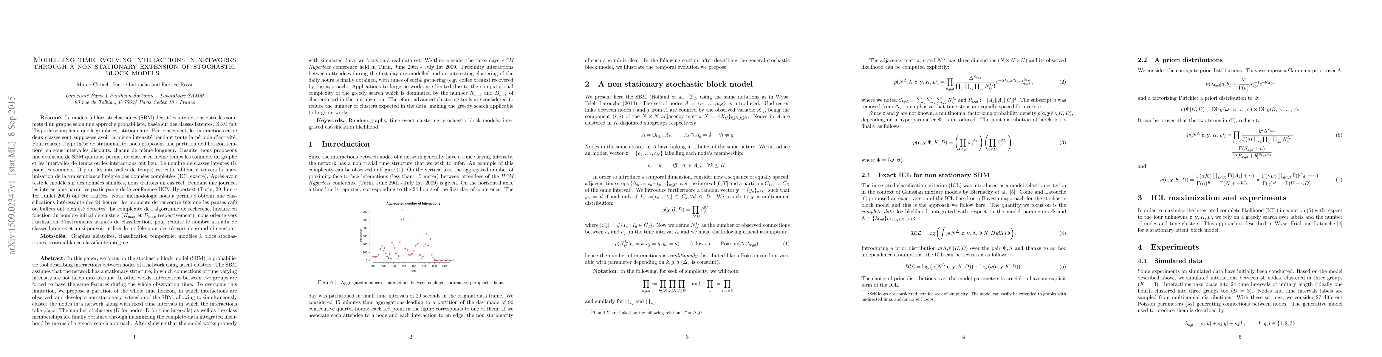 This paper proposes a non-stationary extension of the stochastic block model to capture time-varying interactions in networks by partitioning the observation time into intervals. The model clusters nodes and time intervals simultaneously, demonstrating its effectiveness on a real dataset from the ACM Hypertext conference. However, computational complexity limits its application to large networks.